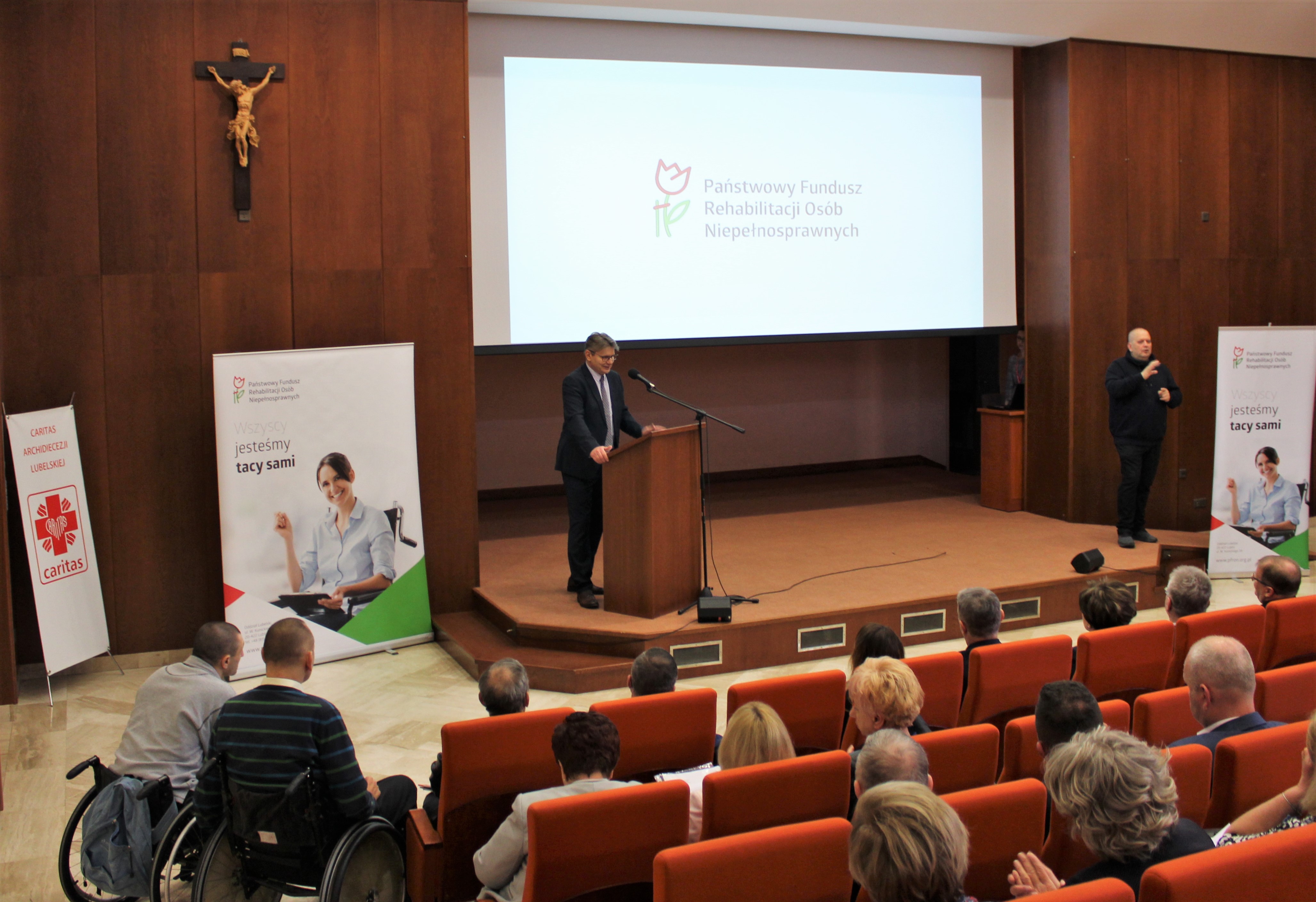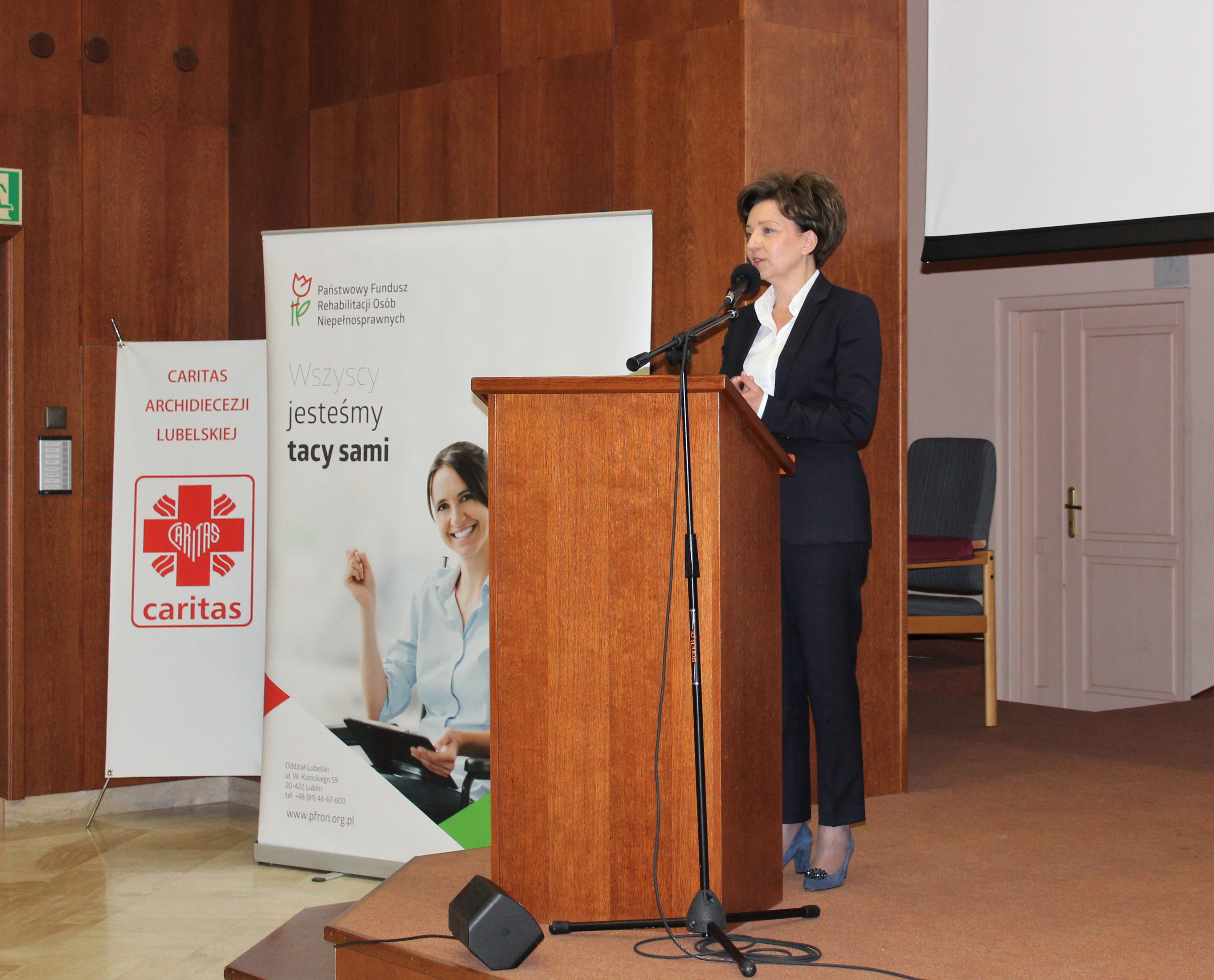 Konferencja „Włączeni – działania instytucji zaufania publicznego na rzecz osób z niepełnosprawnościami w województwie lubelskim”, w której udział wzięli Prezes Zarządu PFRON Marlena Maląg i zastępca Prezesa Zarządu PFRON ds. finansowych Tomasz Maruszewski, zorganizowana została przez Oddział Lubelski Państwowego Funduszu Rehabilitacji Osób Niepełnosprawnych. W konferencji rolę prelegentów otrzymali, również przedstawiciele wojewódzkich oddziałów ZUS oraz NFZ, którzy zaprezentowali najważniejsze zagadnienia dotyczące ich obszarów odpowiedzialności przy wspieraniu osób z niepełnosprawnościami.