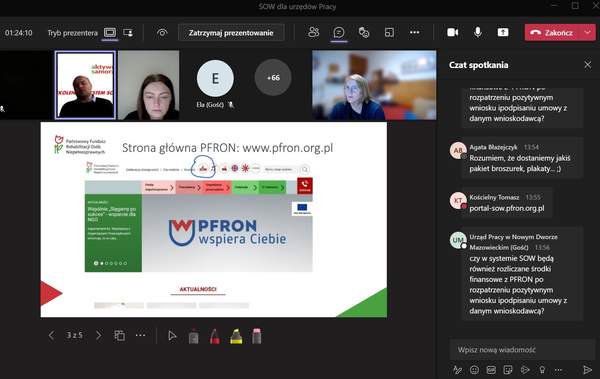 Cieszymy się z dużej frekwencji, która świadczy o zainteresowaniu zwiększeniem dostępności dla osób z niepełnosprawnością. Uczestnikom spotkania przedstawiliśmy zalety zdalnego składania wniosków za pomocą Systemu Obsługi Wsparcia (SOW), który jest nowoczesną platformą przeznaczoną do składania i obsługi wniosków o świadczenia finansowane ze środków PFRON. Dzięki SOW aplikowanie o środki PFRON możliwe jest bez wychodzenia z domu i poza godzinami pracy urzędów (w praktyce 24 godziny na dobę), dając istotną przewagę nad tradycyjną formą papierową, która wymaga osobistego stawiennictwa w urzędzie.