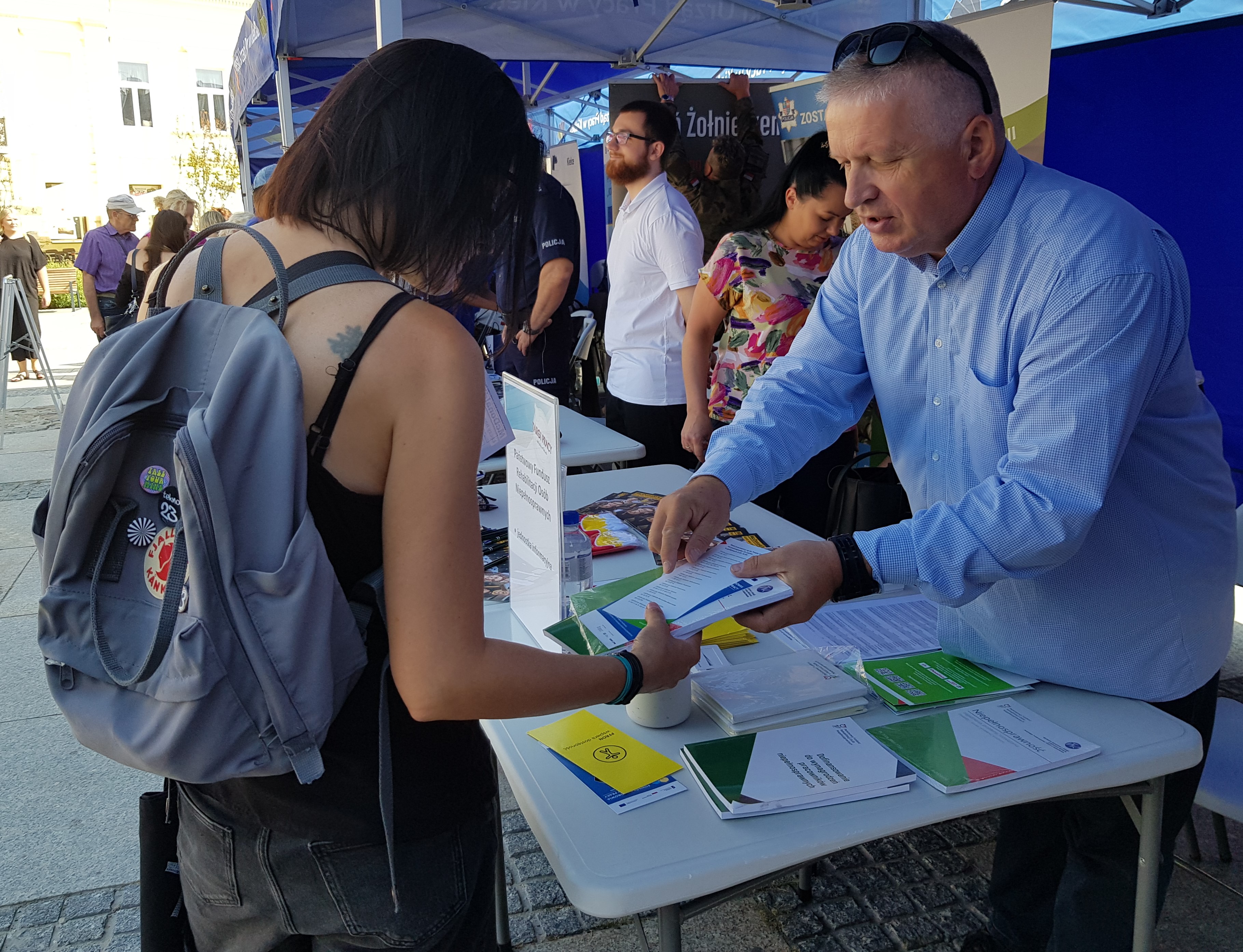 5 września br. na kieleckim rynku odbyły się Targi Pracy. Organizatorami wydarzenie był: Miejski Urząd Pracy i Powiatowy Urząd Pracy w Kielcach. Celem targów była pomoc pracodawców w znalezieniu kandydatów do pracy o poszukiwanych kwalifikacjach, a osobom bezrobotnym i poszukującym pracy pomoc w uzyskaniu odpowiedniego zatrudnienia. W Targach wzięło udział kilkaset osób szukających zatrudnienia. Swoje stoisko wystawił także Oddział Świętokrzyski PFRON. Pracownicy Oddziału odpowiadali na pytania zadawane przez poszukujących zatrudnienia oraz przekazywali informacje o realizowanych obecnie projektach przez Państwowy Fundusz Rehabilitacji Osób Niepełnosprawnych.