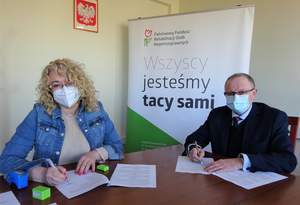 Dyrektor Oddziału Świętokrzyskiego PFRON Andrzej Michalski oraz prezes zarządu fundacji Dogadanka, Aleksandra Bąk podpisali umowę: „Wsparcie psychologiczne terapeutyczne dla osób z niepełnosprawnością poprzez wznowienie Centrum Komunikacji i Wsparcia”. Według pani prezes taka pomoc w czasie pandemii i tego co dzieje się za naszą wschodnią granicą jest bardzo potrzebna. Wsparcie będzie prowadzone poprzez infolinię, a także pracę stacjonarną psychologów. - Będziemy prowadzić porady przez telefon, jednak każda osoba, która potrzebuje wsparcia psychologicznego będzie mogła również przyjść do naszej siedziby i tam spotkać się ze specjalistą. Wsparcie będzie można także uzyskać kontaktując się z naszymi pracownikami przez platformę Teams – mówi pani Aleksandra. Jak zaznaczyła osoby z niepełnosprawnościami, samotni, bardzo potrzebują rozmowy ze specjalistami i wsparcia, dlatego Fundacja Dogadanka wychodzi naprzeciw tym oczekiwaniom. Każdy, kto potrzebuje wsparcia może je uzyskać od godziny 7.00 do 20.00 dzwoniąc do Fundacji Dogadanka pod nr tel. 733 55 22 35 lub udając się do siedziby Fundacji znajdującej się w Kielcach przy ul. Piekoszowskiej 32.