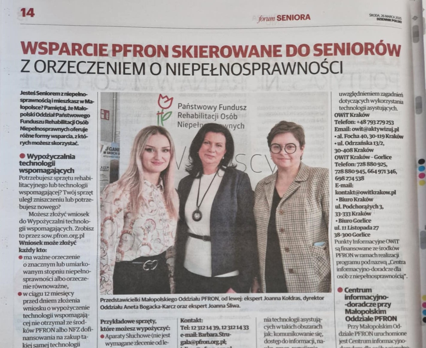 Tekst skierowany do seniorów z orzeczeniem o niepełnosprawności powstał w związku z dzisiejszym Forum Seniora, którego organizatorem są Dziennik Polski oraz Gazeta Krakowska.