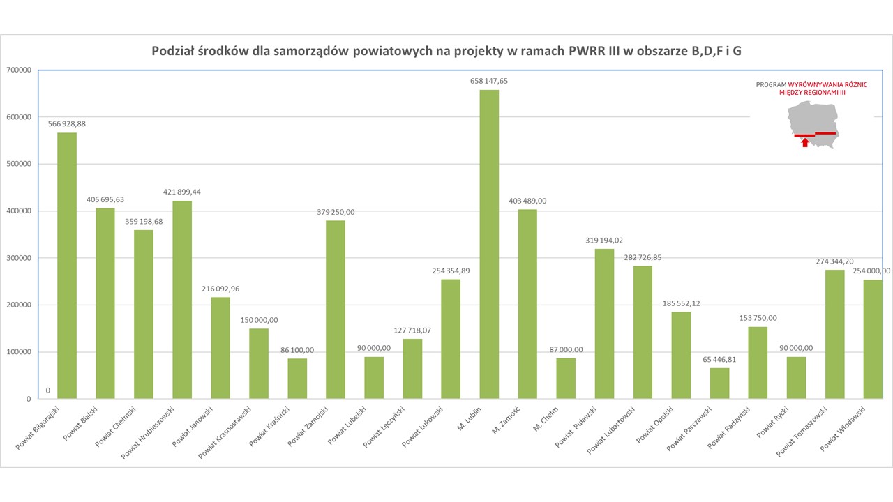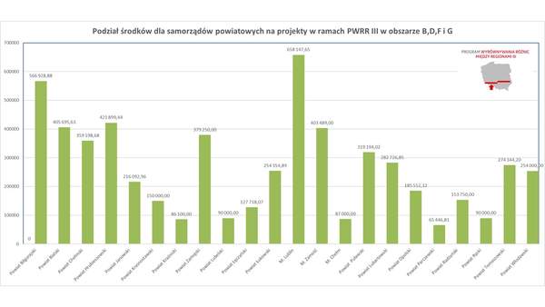 - D – na likwidację barier transportowych – 21 projektów na łączną kwotę 2.051.031,89 zł;