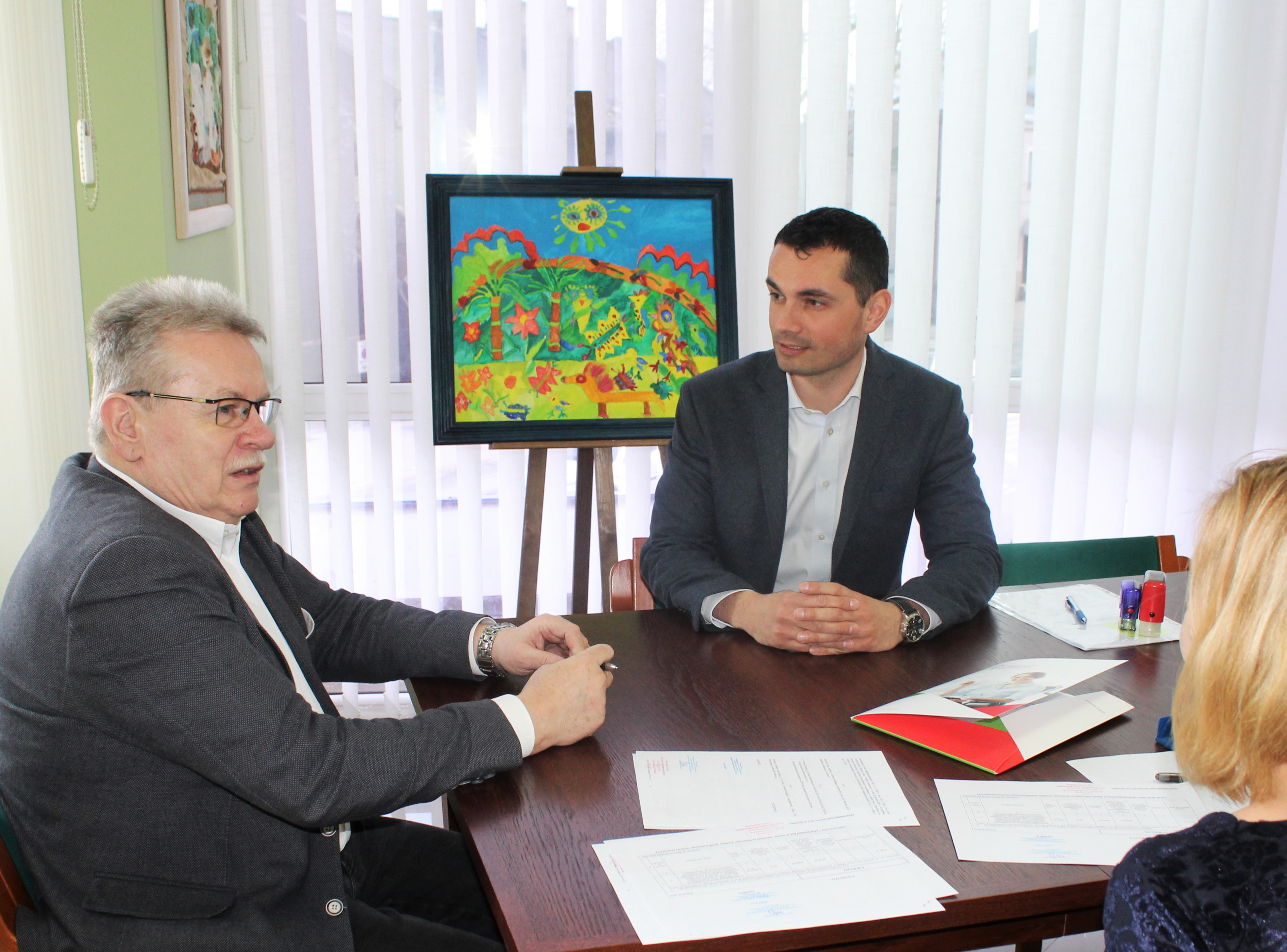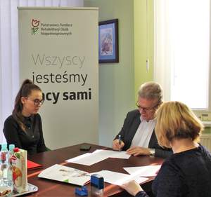 Dyrektor Oddziału Lubelskiego PFRON odbył również spotkanie z Prezes Zarządu Stowarzyszenia na rzecz Dzieci i Młodzieży Niepełnosprawnej Ruchowo w Lublinie Aliną Starek oraz Skarbnikiem Stowarzyszenia Lidią Chruściel. Spotkanie zakończyło się podpisaniem umowy w ramach konkursu „Szansa-Rozwój-Niezależność” (konkurs o zlecenie realizacji zadań w formie wsparcia nr 1/2018), kierunek pomocy 2: „zwiększenie samodzielności osób niepełnosprawnych”.
