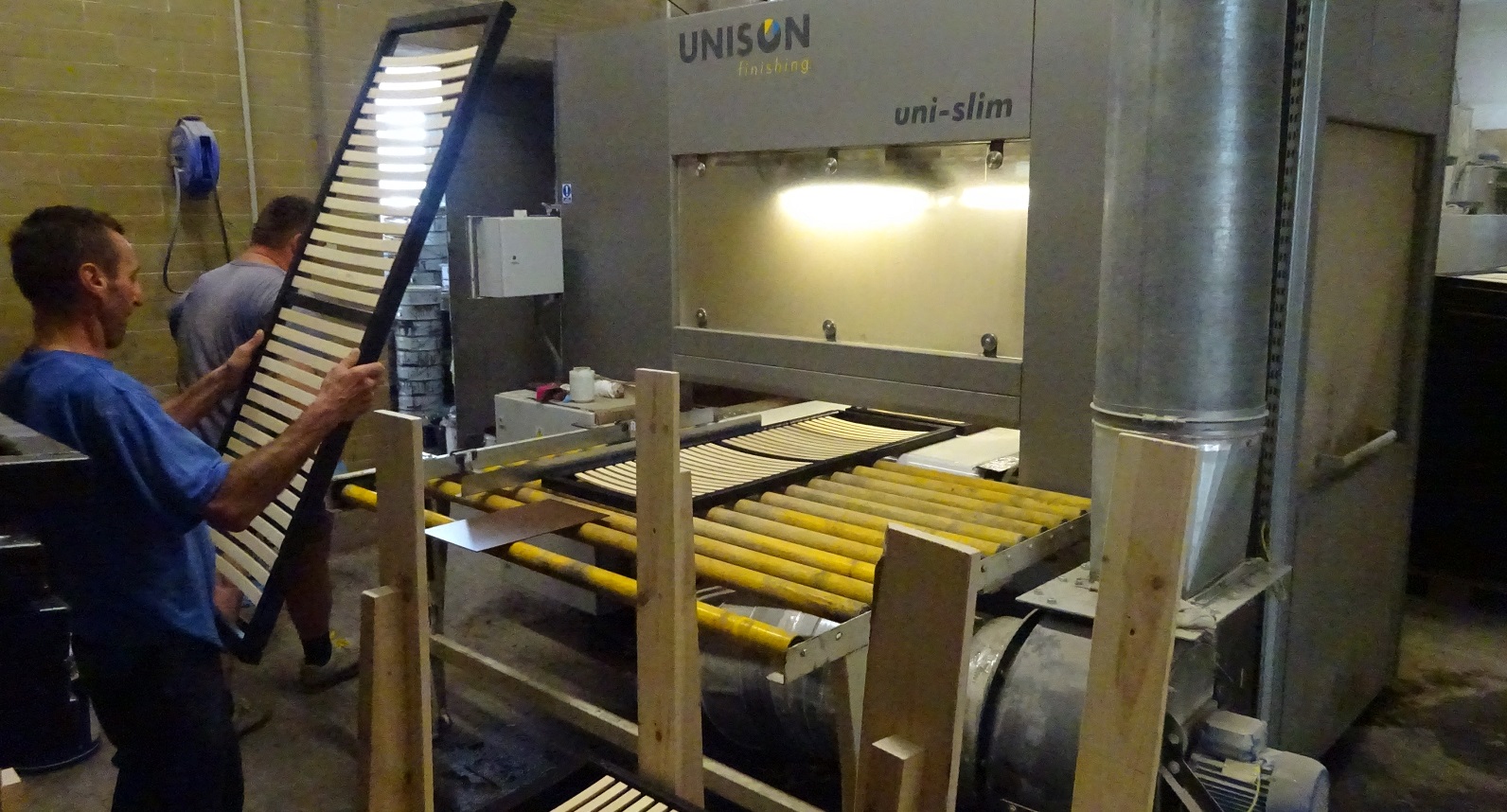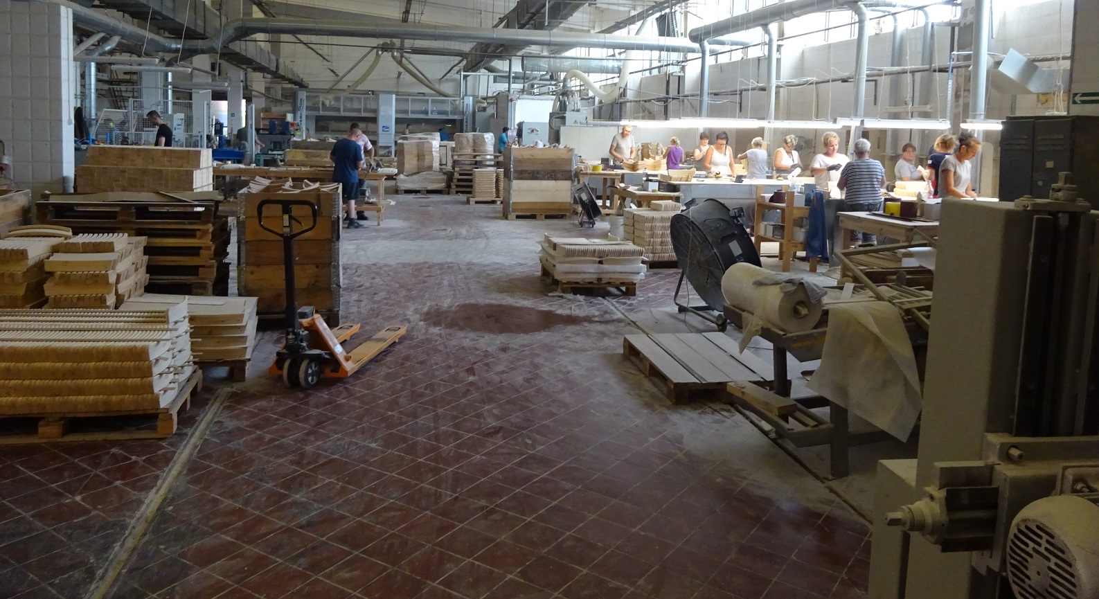 Osoby niepełnosprawne wykonują prace typu szpachlowanie, szlifowanie drewna, segregacja, ocena jakości, podawanie elementów do maszyn lub odbiór z podajników.