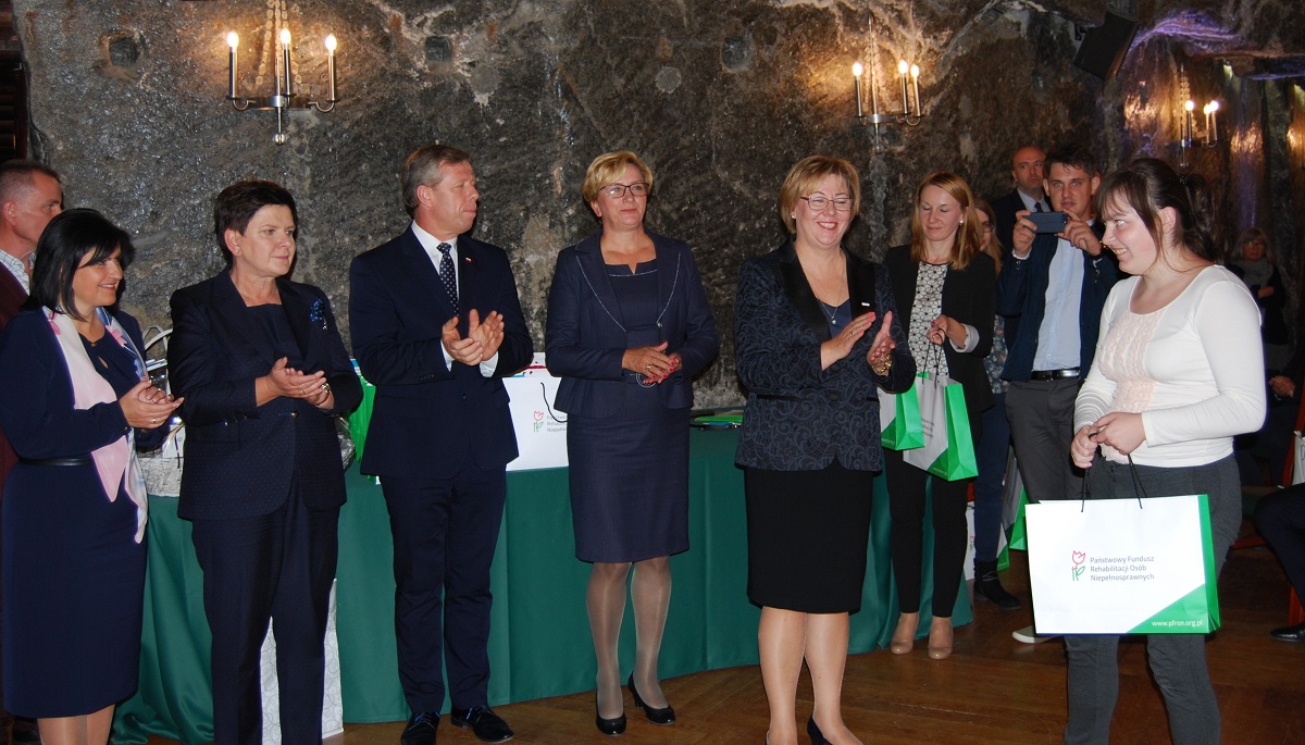 Wczoraj w Kopalni Soli „Wieliczka” Laureaci wojewódzkiego etapu XVI edycji ogólnopolskiego konkursu plastycznego PFRON „Sztuka Osób Niepełnosprawnych” odebrali nagrody z rąk Wicepremier Beaty Szydło oraz Józefy Szczurek – Żelazko – Sekretarz Stanu w Ministerstwie Zdrowia, Zbigniewa Cichonia – Senatora RP, Urszuli Ruseckiej – Poseł na Sejm, Zastępcy Przewodniczącego Komisji Polityki Społecznej i Rodziny, Piotra Ćwika – Wojewody Małopolskiego oraz Marty Mordarskiej – dyrektor Małopolskiego Oddziału PFRON. Tegoroczna edycja odbyła się pod hasłem nawiązującym do setnej rocznicy odzyskania przez Polskę niepodległości: „Niepodległa bez bar – od morza do Tatr”.