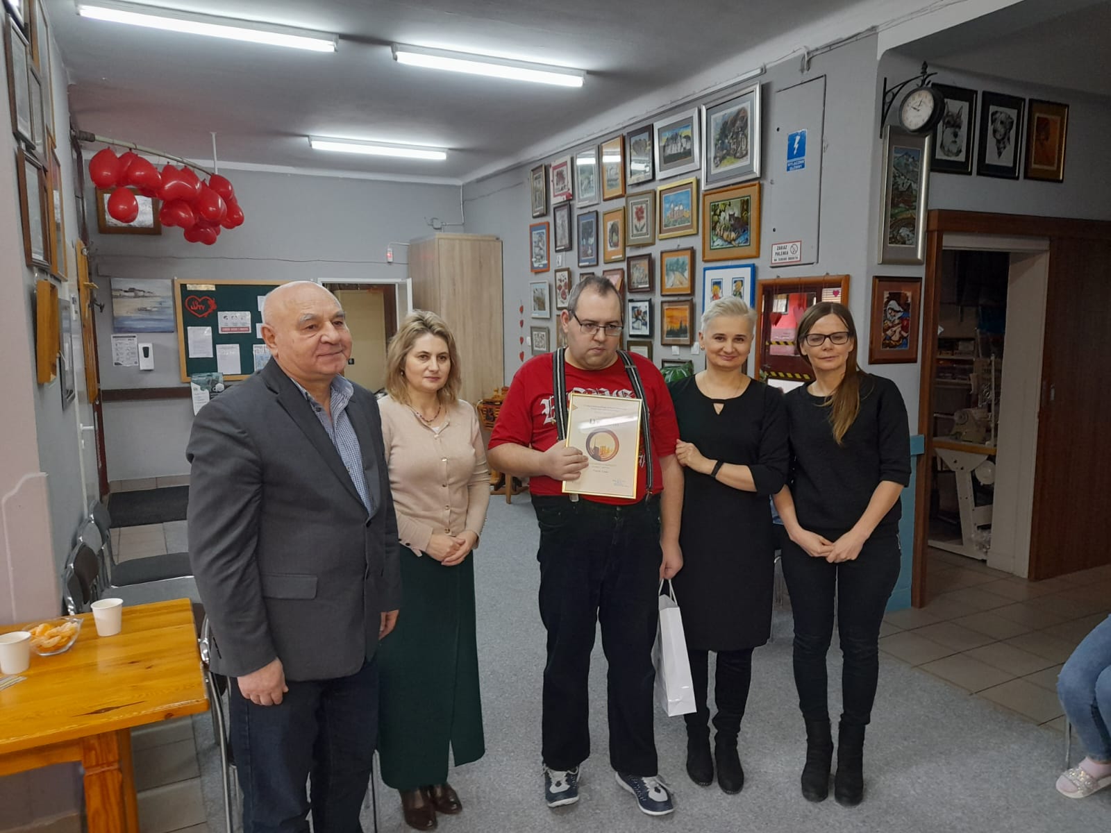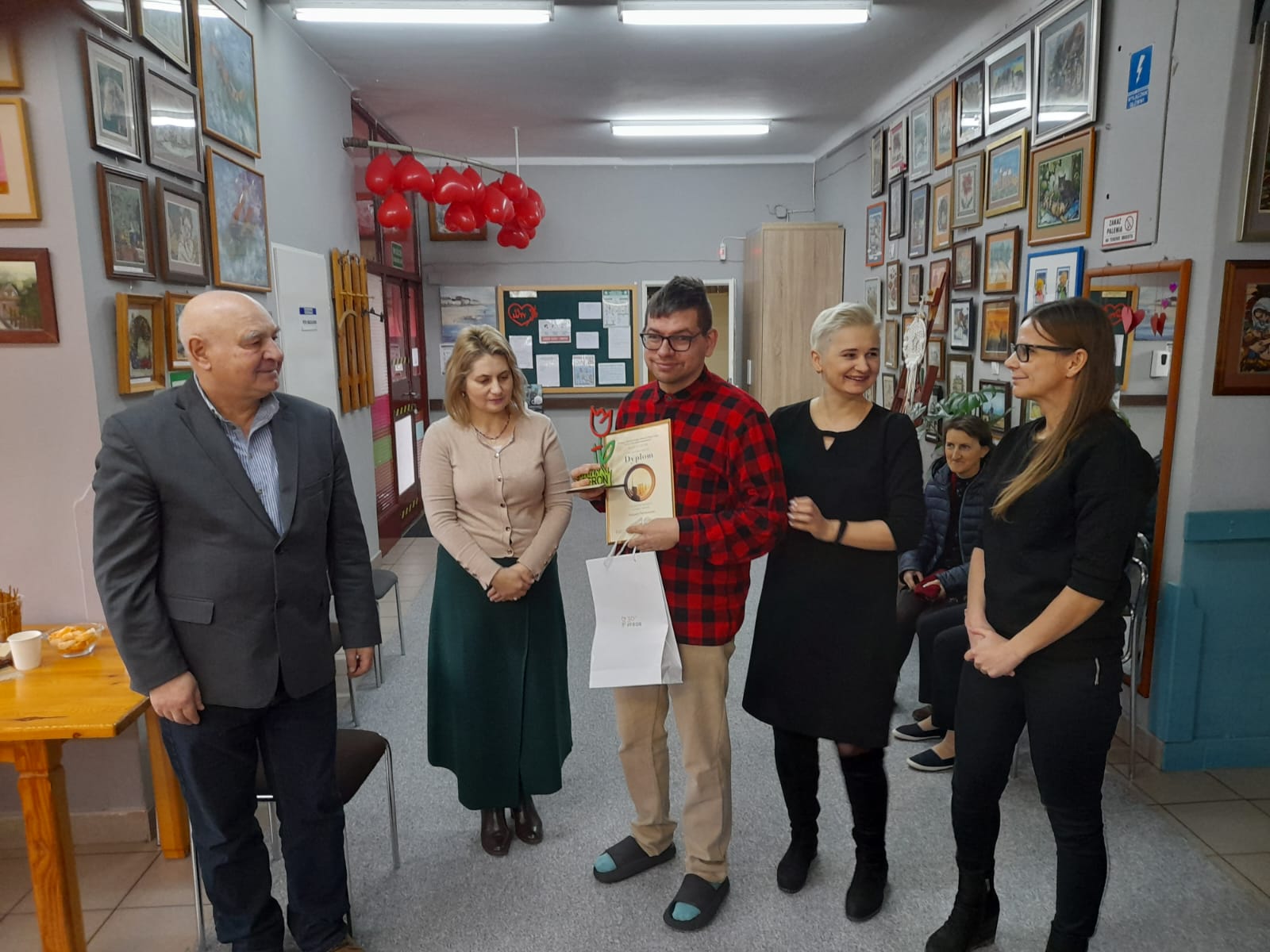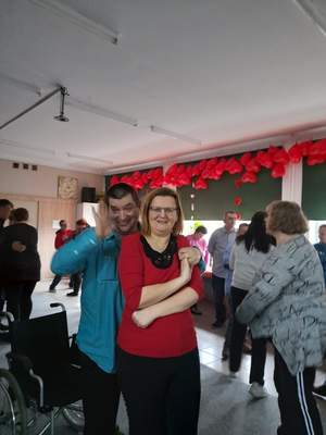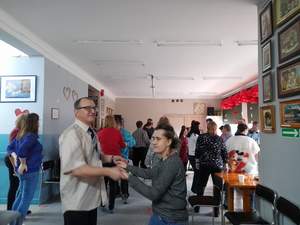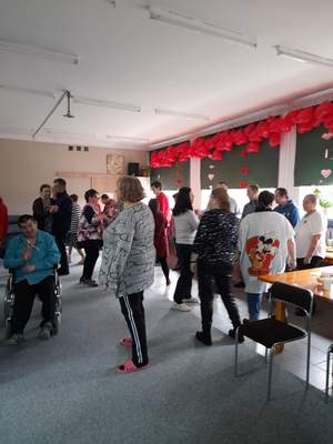 Tego dnia w siedzibie Warsztatów odbył się Bal Walentynkowy uczestników WTZ. Sala wypełniła się roztańczonymi parami. Wspaniałej atmosferze towarzyszyły radosne spotkania ze znajomymi oraz rozmowy. W przerwach między tańcami na uczestników czekał smaczny poczęstunek.