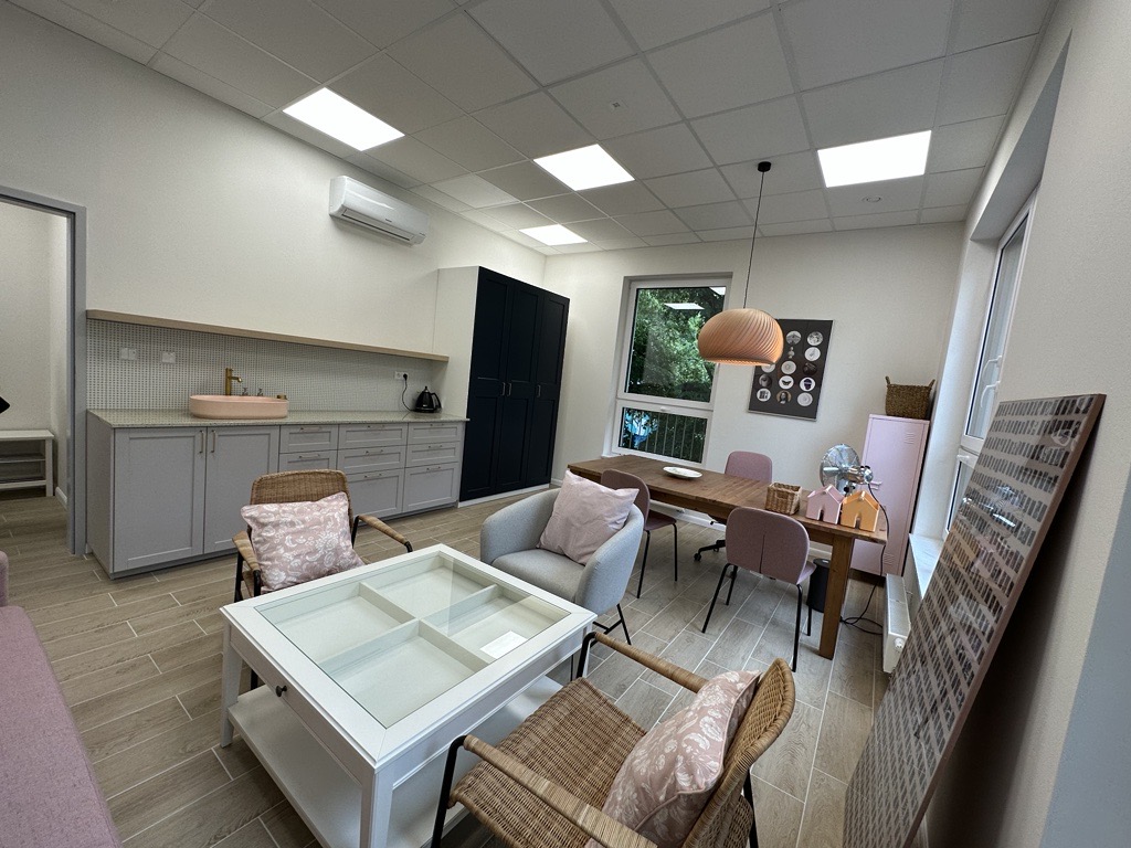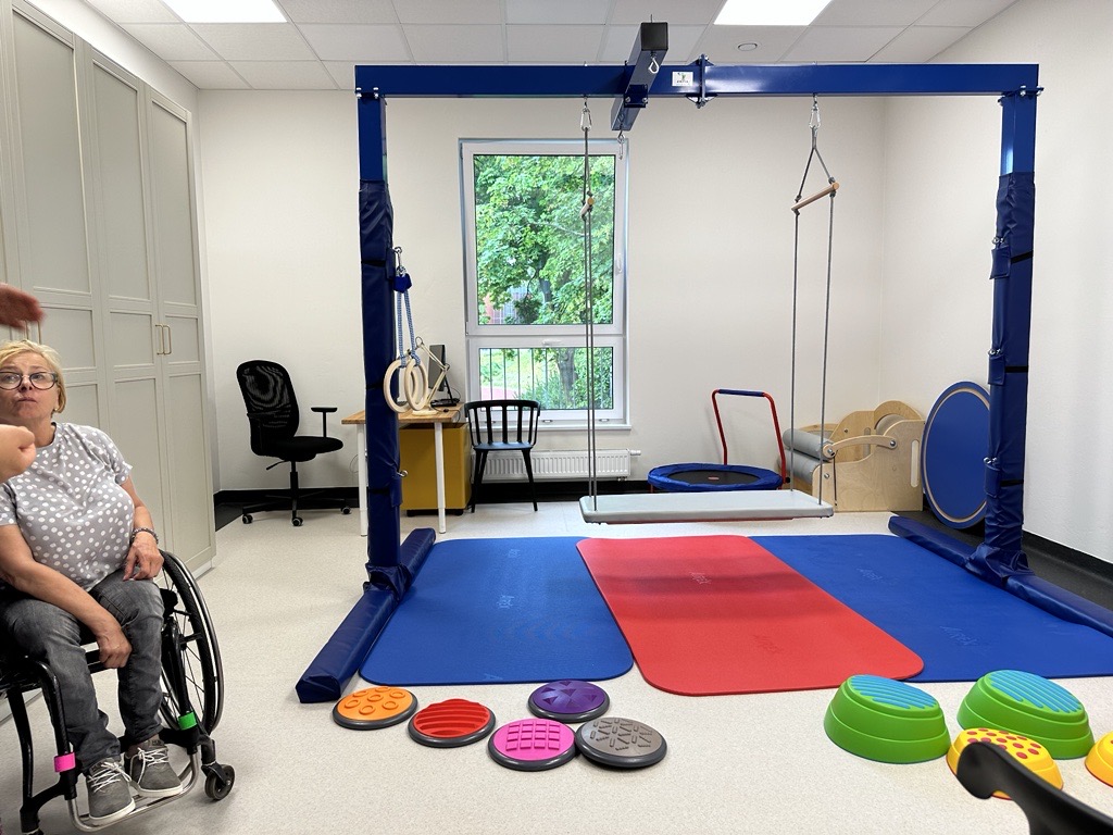 W budynku o powierzchni aż 945 m² stworzono przyjazną przestrzeń, do bezpiecznej reintegracji, rehabilitacji i budowania kompetencji społecznych osób z niepełnosprawnością. To miejsce, w którym mogą przebywać rodzice oraz opiekunowie dzieci i młodzieży w początkowej fazie usamodzielniania. Znajdują się tutaj sale dla uczestników: do terapii grupowej oraz indywidualnej, w tym sala doświadczania świata, pokój wypoczynkowy z możliwością leżakowania, sala terapii integracji sensorycznej, sala do zajęć sensoplastycznych oraz do muzykoterapii. Oprócz tego: recepcja, wózkarnia, miejsce wydawania posiłków oraz jadalnia, łazienki, pomieszczenia biurowe i gospodarcze.