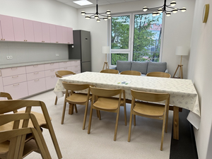 W Ośrodku znalazło się też miejsce na kawiarnię dla lokalnej społeczności. W niej utworzone zostały miejsca pracy dla dorosłych osób z niepełnosprawnością intelektualną – dotychczas uczestników warsztatów terapii zajęciowej prowadzonych przez gdyńskie koło PSONI. Lokal jest również przyjazny dla osób korzystających z transportu rowerowego.