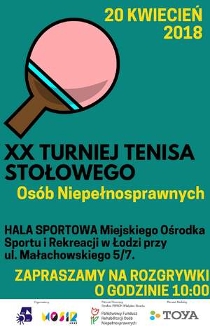 W dniu 20 kwietnia br. w hali Miejskiego Ośrodka Sportu i Rekreacji przy ul. Małachowskiego 5/7 w Łodzi odbędzie na turniej Tenisa Stołowego Osób Niepełnosprawnych, w którym będą uczestniczyć sportowcy z Łodzi i całego województwa łódzkiego. W rozgrywkach weźmie udział ponad 100 zawodników z 15 placówek.