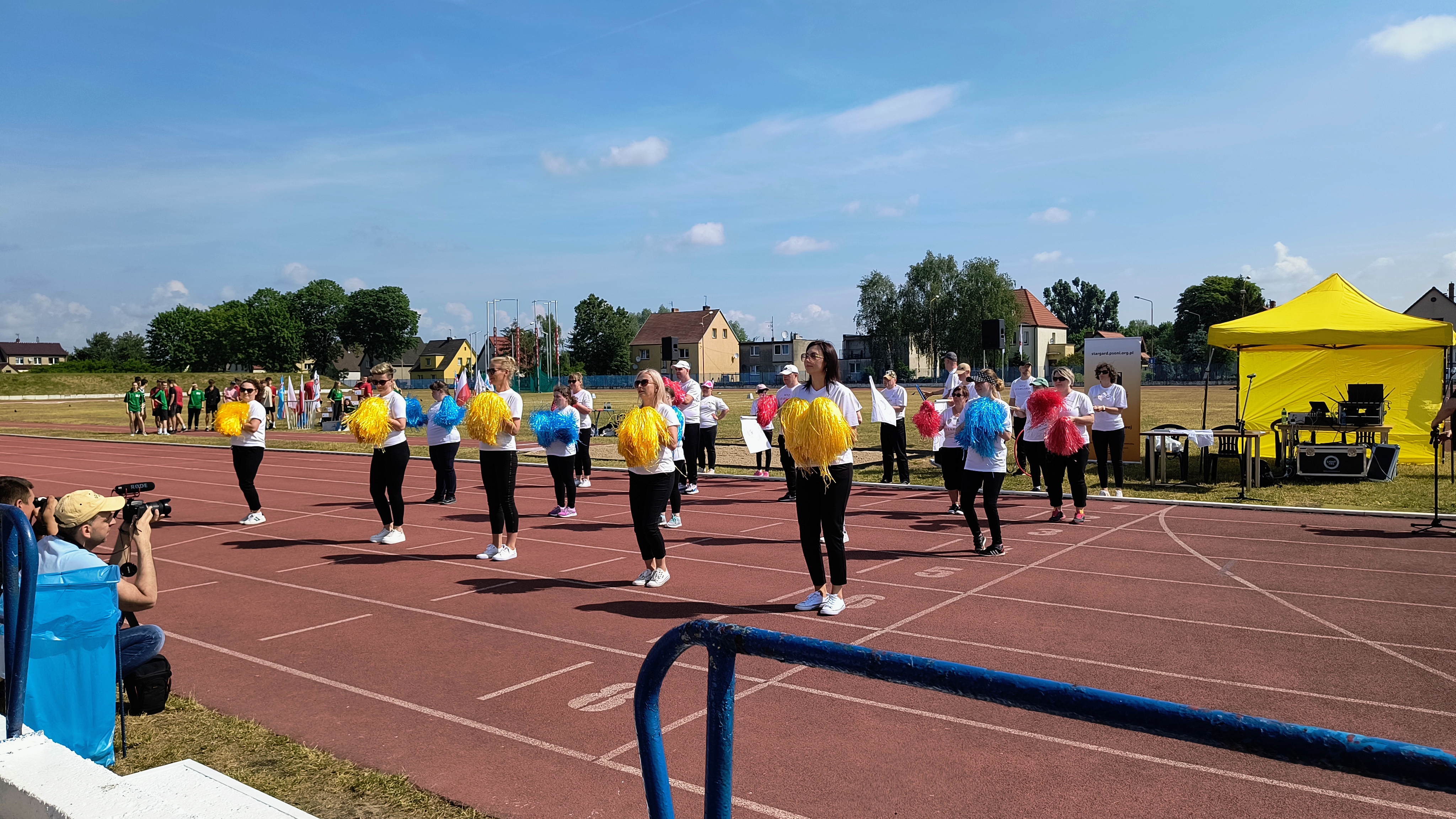 Po uroczystej defiladzie uczestników, których wprowadziła na płytę stadionu orkiestra dęta Big Band z Domu Kultury Kolejarza, wszystkich, w tym także gości na trybunach, witała Agnieszka Kłodowska - Keller, Przewodnicząca Zarządu Polskiego Stowarzyszenia Osób z Niepełnosprawnością Intelektualną Koło w Stargardzie i wieloletni Prezes Koła Kazimierz Nowicki.