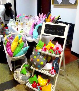 Tłumy zwiedzających i kupujących zjawiły się wczoraj w gmachach Urzędu Marszałkowskiego w Toruniu, gdzie na korytarzach i półpiętrach rozlokowali swoje stoiska wystawcy rękodzieła artystycznego - podopieczni warsztatów terapii zajęciowej, domów pomocy i samopomocy społecznej, zakładów aktywności zawodowej oraz organizacji pozarządowych z całego regionu. Było co podziwiać i z czego wybierać. Piękne ozdoby świąteczne, kurki, pisanki i biżuteria cieszyły oko i zachęcały do zakupów.