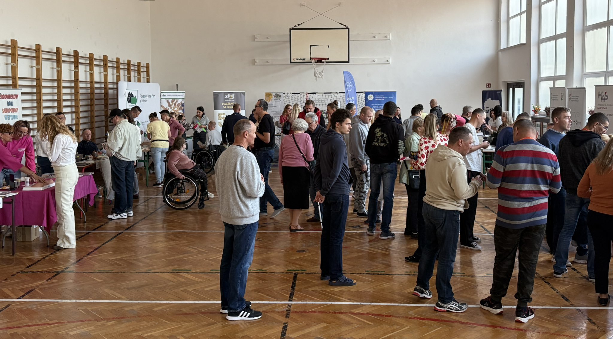 Druga edycja targów zorganizowanych przez Powiatowe Centrum Pomocy Rodzinie w Bytowie, w których mieliśmy przyjemność uczestniczyć przyciągnęły wielu mieszkańców z Bytowa i okolic. Sala gimnastyczna Warsztatów Terapii Zajęciowej w Bytowie zamieniła się w centrum informacyjno-promocyjne dla osób z niepełnosprawnościami.