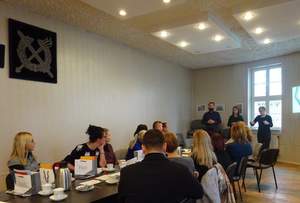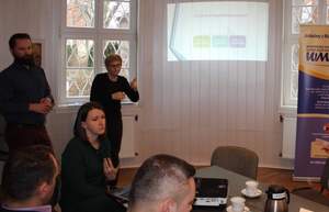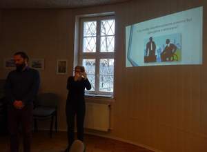 Na spotkanie zaprosiliśmy pracowników Warmińsko-Mazurskiego Sejmiku Osób Niepełnosprawnych: Martę Piotrkowską – doradcę całożyciowego i Cezarego Buszko – psychologa, którzy przygotowali w formie multimedialnej praktyczne informacje, wzbogacone o własne doświadczenia, związane z udzielaniem pomocy osobom niepełnosprawnym (również po odbyciu kary więzienia).