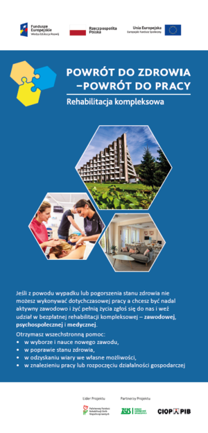 Zapraszamy do udziału w pilotażowym projekcie pn. „Wypracowanie i pilotażowe wdrożenie modelu kompleksowej rehabilitacji umożliwiającej podjęcie lub powrót do pracy” realizowanym przez PFRON we współpracy z ZUS i CIOP.