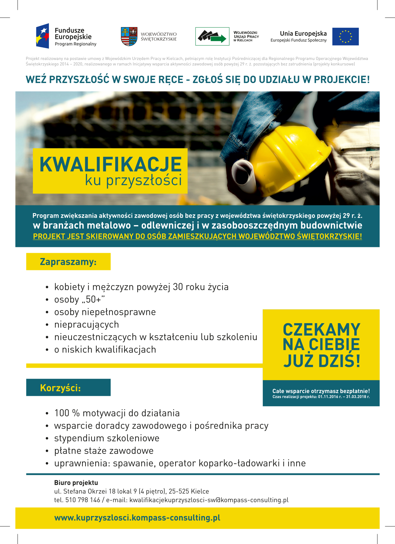 „KWALIFIKACJE KU PRZYSZŁOŚCI – program zwiększania aktywności zawodowej osób bez pracy z województwa świętokrzyskiego powyżej 29 r.ż. w branżach metalowo – odlewniczej