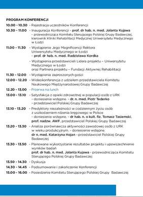 Celem konferencji jest przedstawienie badań przeprowadzonych na osobach z uszkodzeniem rdzenia kręgowego, którzy wiedzą najlepiej o trudnościach codziennego życia. W programie można będzie zobaczyć prezentacje i panele dyskusyjne specjalistów z całej Polski wskazujące nowe nurty nad najnowocześniejszymi rozwiązaniami oraz ich implementacja według modelu międzynarodowej współpracy środowiska naukowego, strony publicznej oraz ekspertów środowiska społecznego.