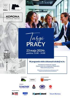 23 maja br. w Galerii Korona w Kielcach odbędą się Targi Pracy. Organizatorami wydarzenie są: Miejski Urząd Pracy i Powiatowy Urząd Pracy w Kielcach. Celem targów jest pomoc pracodawcom w znalezieniu kandydatów do pracy o poszukiwanych kwalifikacjach, a osobom bezrobotnym i poszukującym pracy pomoc w uzyskaniu odpowiedniego zatrudnienia.