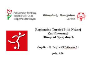 Na Regionalny Turniej Piłki Nożnej Zunifikowanej zapraszają Olimpiady Specjalne Polska-Opolskie, Oddział Opolski Państwowego Funduszu Rehabilitacji Osób Niepełnosprawnych, Zespół Szkół Specjalnych im. Juliana Tuwima, Zespół Szkół Zawodowych im. Piastów Opolskich w Krapkowicach oraz Warsztat Terapii Zajęciowej w Krapkowicach.