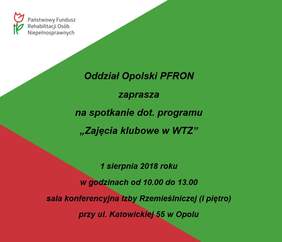 Zapraszamy na spotkanie dot. programu „Zajęcia klubowe w WTZ”