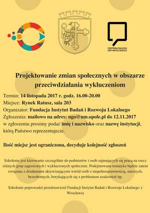 Zapraszamy na szkolenie dot. projektowania zmian społecznych w obszarze przeciwdziałania wykluczeniom