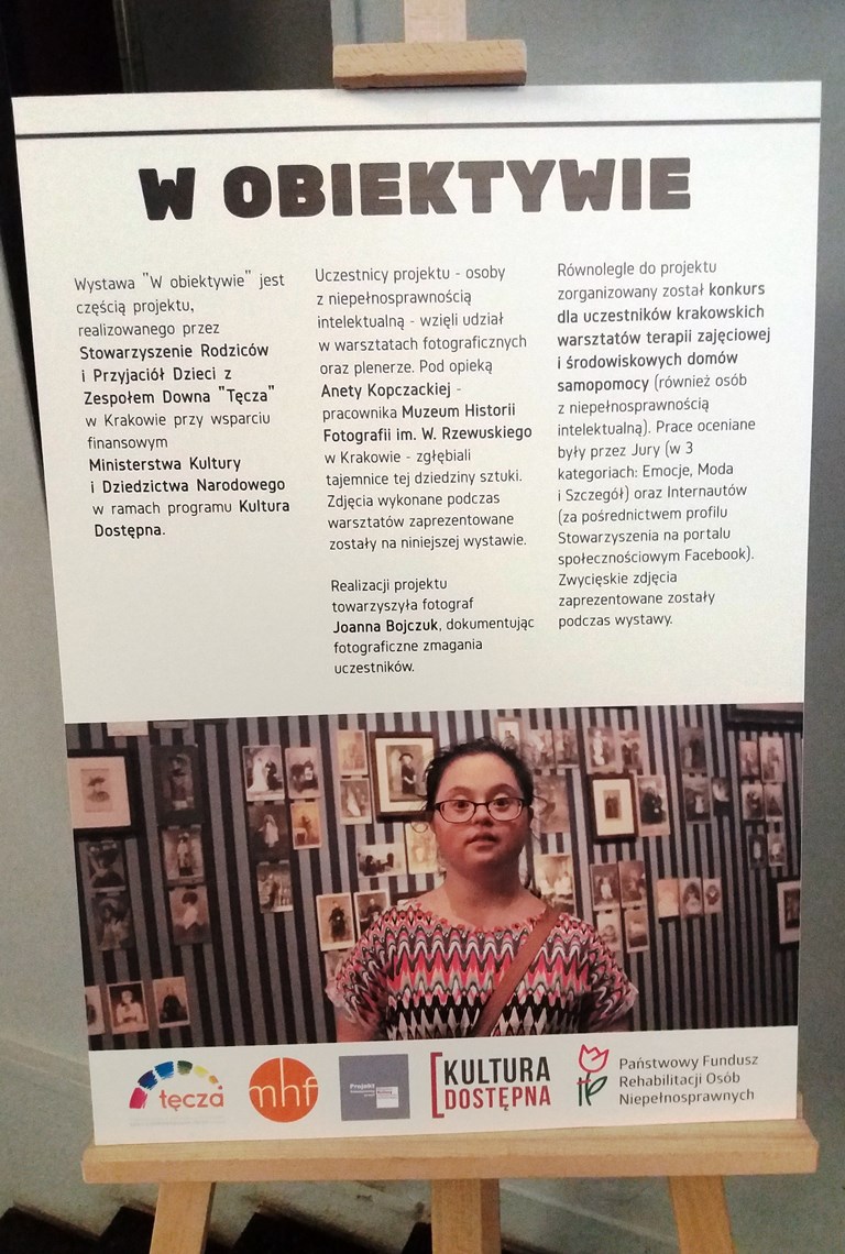 Małopolskie Oddział PFRON zaprasza na wystawę fotografii autorstwa osób z niepełnosprawnością intelektualną. Zdjęcia wykonane zostały w ramach projektu „W obiektywie: tajemnice fotografii”. Wystawę można oglądać do 8 października 2017 r. w hallu Muzeum PRL-u w Krakowie. Organizatorem wystawy jest Stowarzyszenie Rodziców i Przyjaciół Dzieci z Zespołem Downa „Tęcza”.
