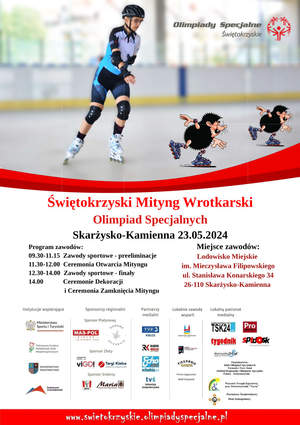 23. maja br. na Lodowisku Miejskim im Mieczysława Filipowskiego, przy ul. Ks. Stanisława Konarskiego 34 w Skarżysku – Kamiennej, odbędzie się Świętokrzyski Mityng Wrotkarski Olimpiad Specjalnych. Początek zawodów o godzinie 9.30, dekoracja i ceremonia zamknięcia rozpocznie się o godzinie 14.00. Organizatorzy: Klub Olimpiad Specjalnych Tornado i Tacy Sami, Oddział Regionalny Olimpiady Specjalne Polska – Świętokrzyskie – zapraszają.