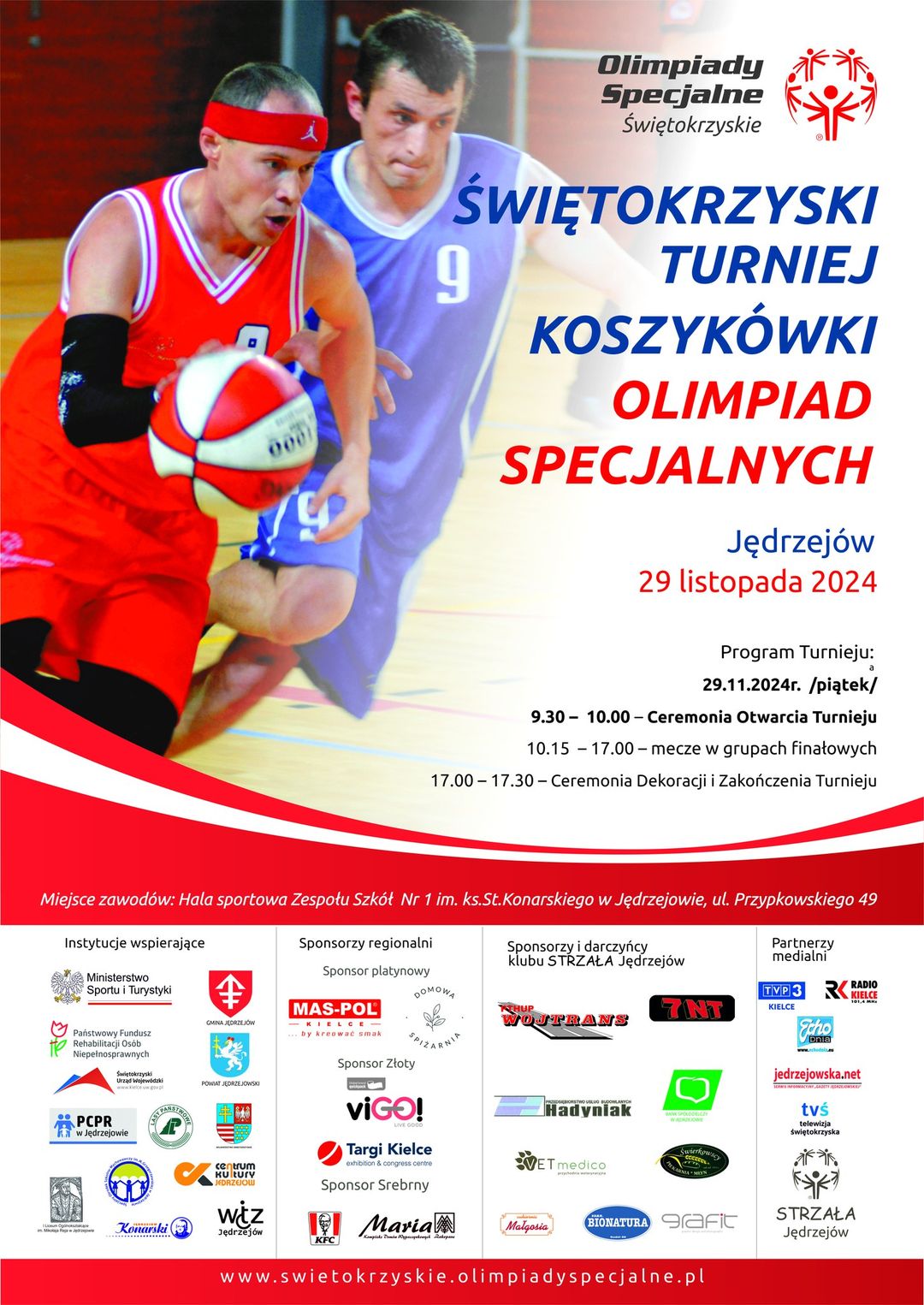 29 listopada br. w Jędrzejowie odbędzie się Świętokrzyski Turniej Koszykówki Olimpiad Specjalnych. Oddział Regionalny Olimpiady Specjalne Polska-Świętokrzyskie oraz Klub Olimpiad Specjalnych „STRZAŁA” w Jędrzejowie zapraszają na to wydarzenie. Zawody odbędą się w Hali sportowej Zespołu Szkół Nr 1 im. ks. Stanisława Konarskiego w Jędrzejowie, ul. Przypkowskiego 49. Ceremonia otwarcia odbędzie się o 9.30.