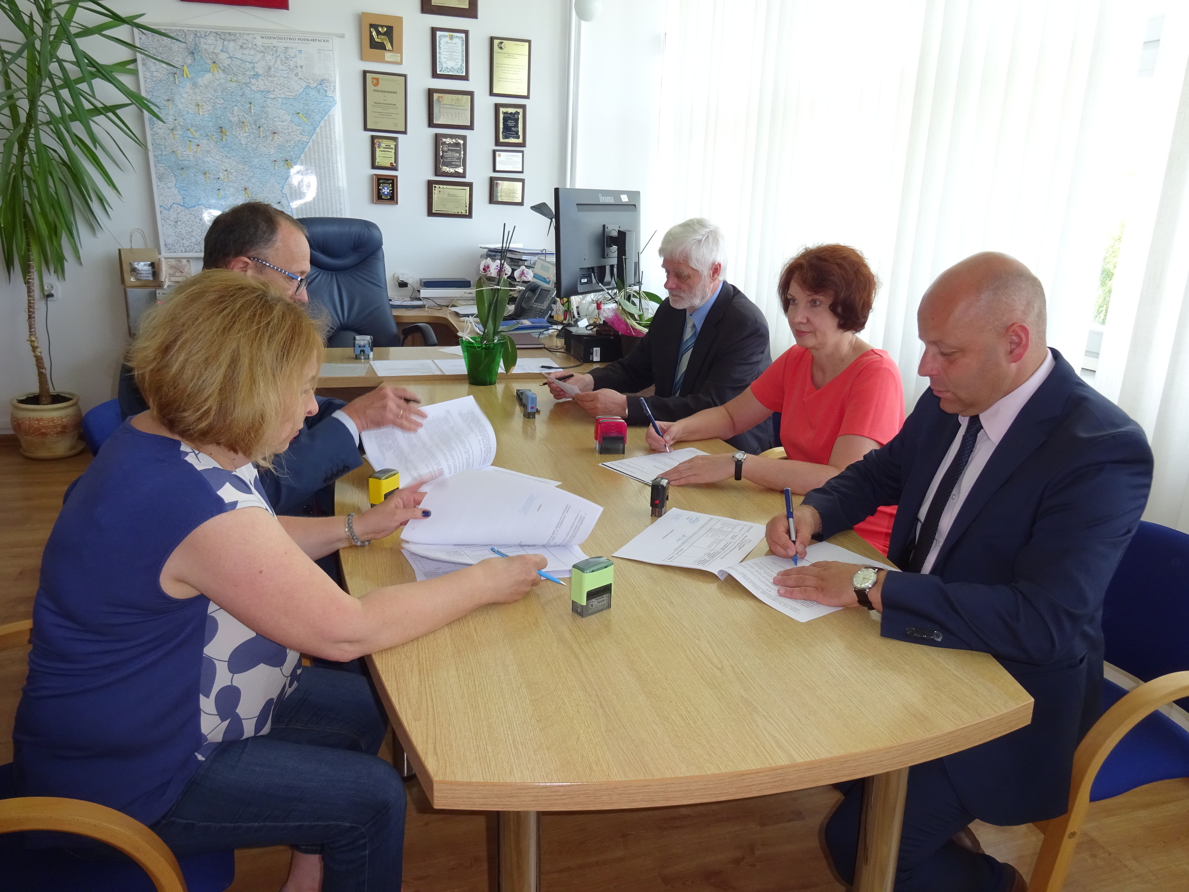 Dzisiaj w siedzibie Oddziału Podkarpackiego PFRON zawarto umowy z przedstawicielami Powiatu Niżańskiego w osobach: Robert Bednarz – Starosta, Adam Mach – Wicestarosta, Maria Bednarz – Skarbnik Powiatu.