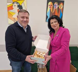 Wczoraj, jak co roku w "tłusty czwartek", naszą siedzibę odwiedził Pan Adam Stromidło Prezes Małopolskiego Oddziału Polskiego Związku Głuchych. Pan Prezes przyniósł słodką niespodziankę w postaci chrustu / faworków. Ten poczęstunek przygotowały Panie z Polskiego Związku Głuchych.