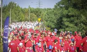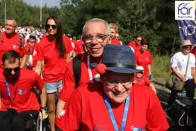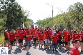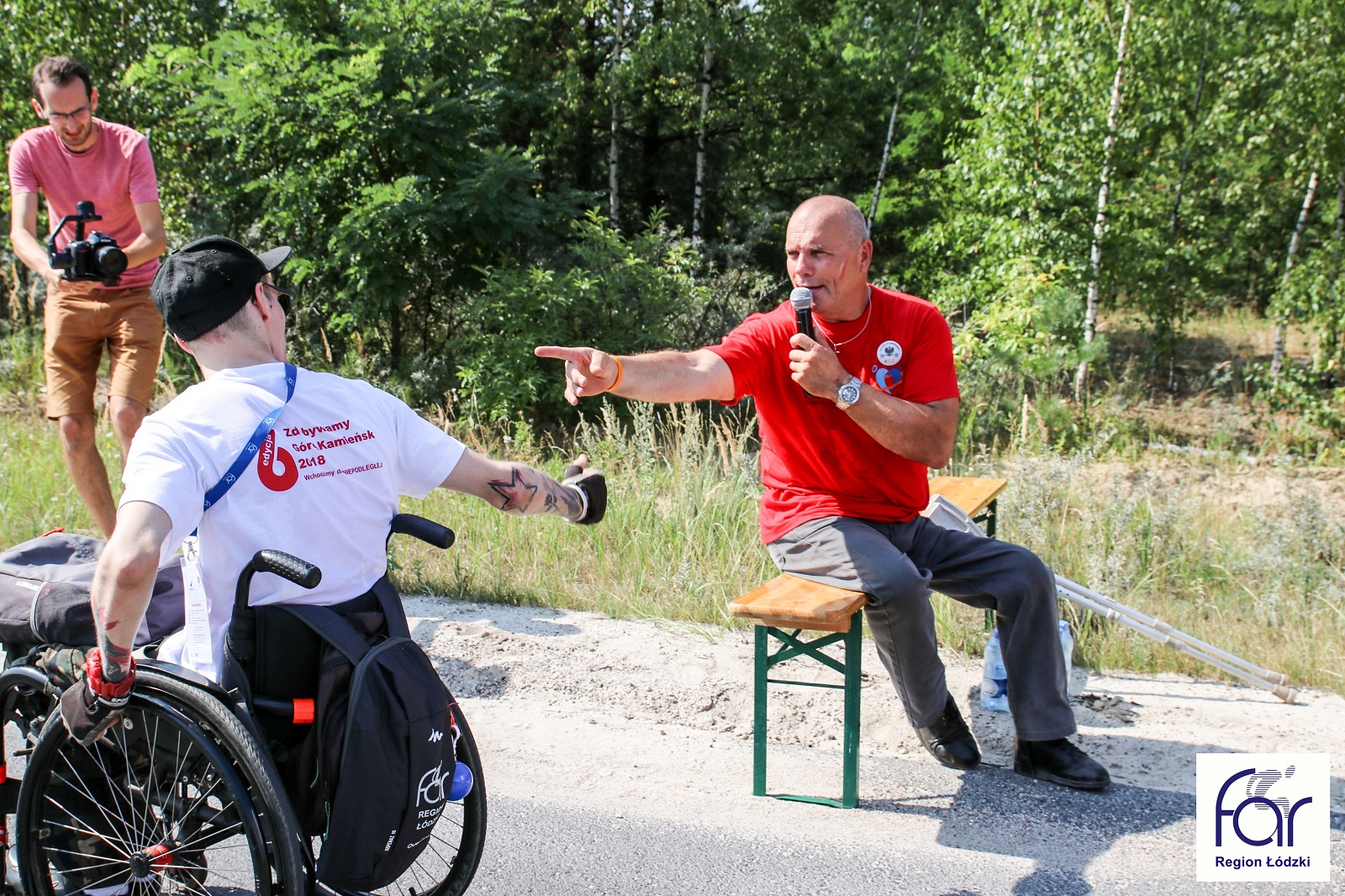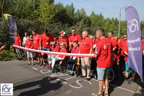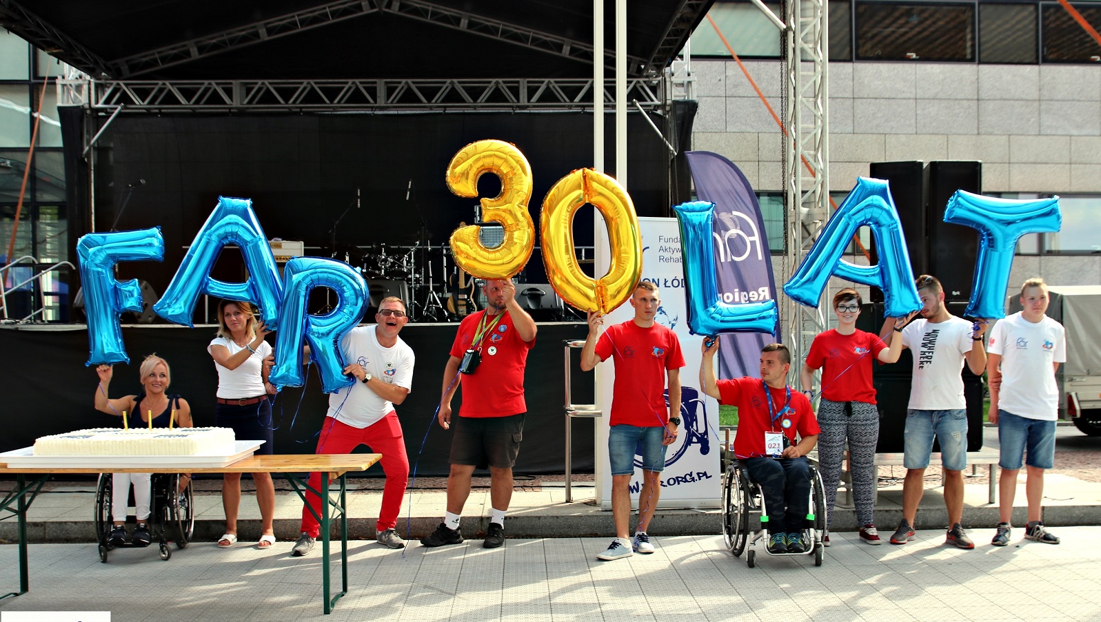 Uczestnicy trasę pokonywali w białych i czerwonych koszulkach. Po blisko 3 godzinach wszyscy uczestnicy zdobyli szczyt i szczęśliwi dotarli do drugiego punktu imprezy, który znajdował się na dziedzińcu Solparku w Kleszczowie. Tam na wszystkich czekał gorący bigos, grillowana kiełbaska i tort na okoliczność 30-lecia Fundacji Aktywnej Rehabilitacji.
