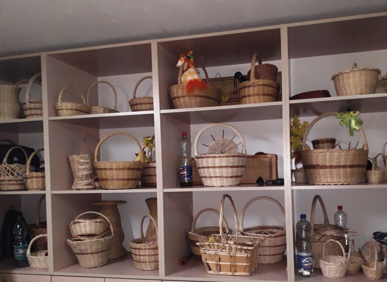 Półki z koszami wiklinowymi
