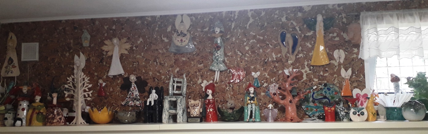 Półka z ceramicznymi figurkami