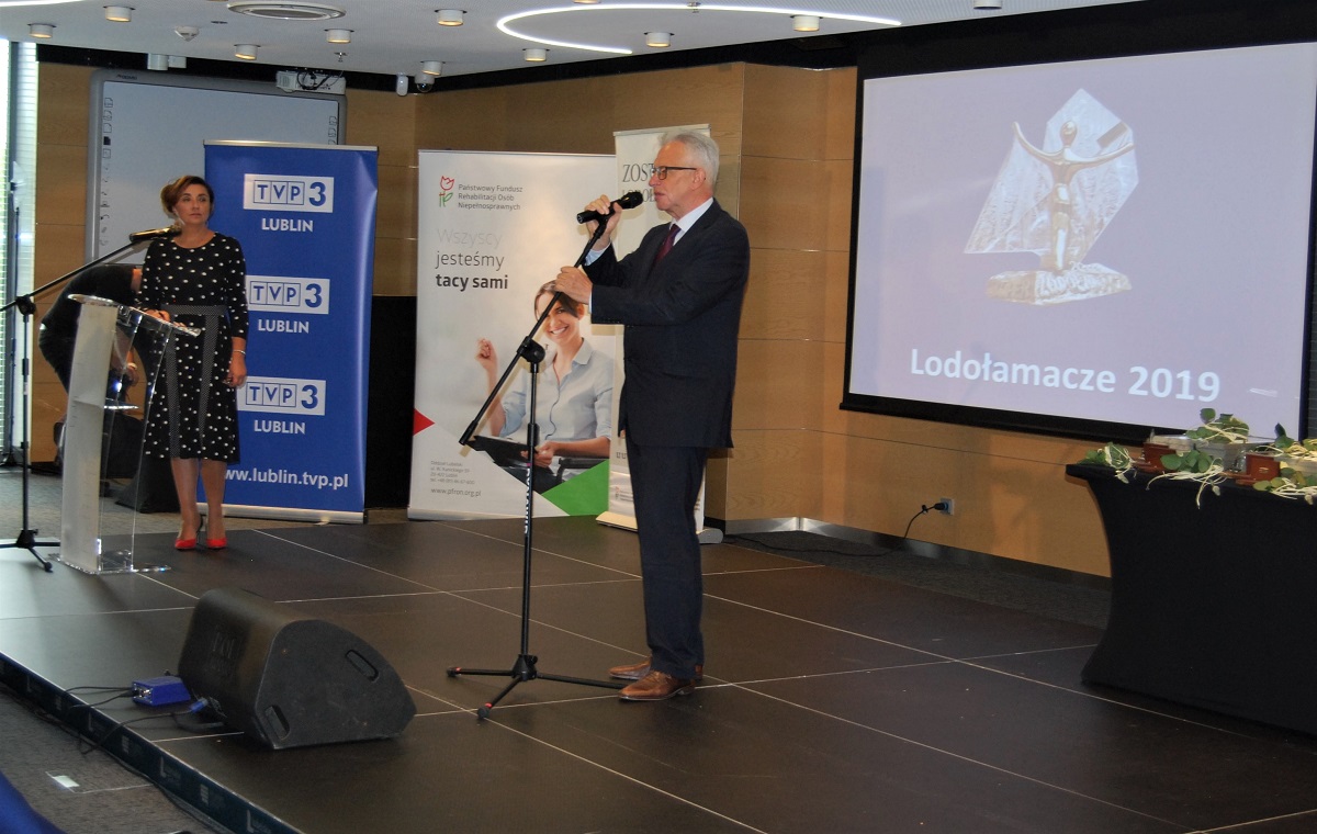 Wczoraj w Lublinie odbyła się gala XIV edycji konkursu Lodołamacze. Podczas uroczystości wręczono nagrody dla pracodawców, którzy na co dzień łamią stereotypy i zatrudniają osoby z niepełnosprawnościami. Uhonorowano laureatów z regionu lubelskiego, małopolskiego, podkarpackiego i świętokrzyskiego. Lodołamacze to konkurs dla pracodawców wrażliwych społecznie organizowany w Polsce od 2006 roku. W Konkursie nagradzani są pracodawcy zatrudniający osoby niepełnosprawne, a także firmy, instytucje i osoby dla których priorytetem jest wrażliwość, eliminowanie barier i podziałów społecznych względem osób z niepełnosprawnościami. Statuetki wręczono w 6 kategoriach: zatrudnienie chronione, otwarty rynek pracy, instytucja, zdrowa firma, przyjazna przestrzeń oraz dziennikarz bez barier. Kapituła przyznała również tytuły honorowe Super Lodołamacza i Lodołamacza Specjalnego. Marta Mordarska – Dyrektor Oddziału Małopolskiego PFRON kolejny już raz była członkiem Kapituły Konkursu. Organizatorem Lodołamaczy jest Polska Organizacja Pracodawców Osób Niepełnosprawnych.