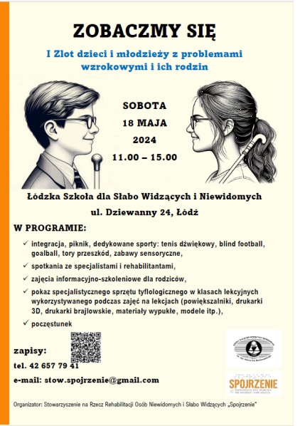 Zlot odbędzie się w sobotę 18 maja br. w godz. 11.00 – 15.00 na terenie Łódzkiej Szkoły dla Słabowidzących i Niewidomych przy ul. Dziewanny 24.