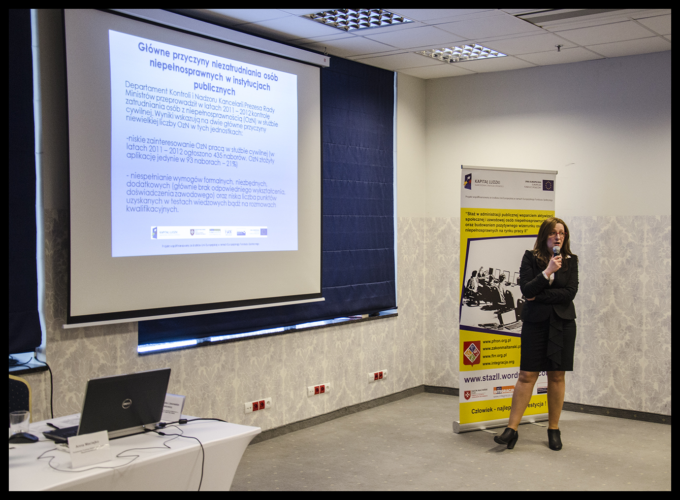 W dniu 21 kwietnia 2015 r. w JM Hotelu przy ul. Grzybowskiej 45 w Warszawie odbyła się konferencja promocyjno-upowszechniająca rezultaty projektu „Staż wadministracji publicznej wsparciem aktywizacji społecznej izawodowej osób niepełnosprawnych oraz budowaniem pozytywnego wizerunku osób niepełnosprawnych narynku pracy II”.