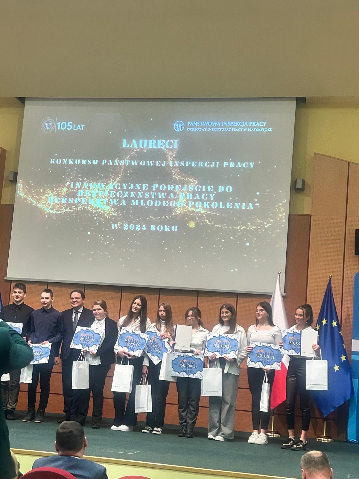 Podczas konferencji wręczono nagrody w ramach licznych programów i konkursów promujących bezpieczeństwo pracy. Doceniono m.in. laureatów konkursu „Innowacyjne podejście do bezpieczeństwa pracy – perspektywa młodego pokolenia”. Zwycięzcami zostali, uczniowie Zespołu Szkół w Dąbrowie Białostockiej, którzy przygotowali kreatywną prezentację na temat zapobiegania zagrożeniom w miejscu pracy.