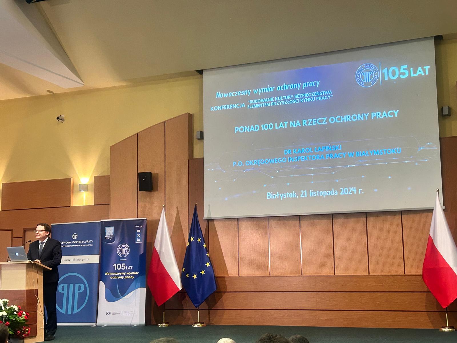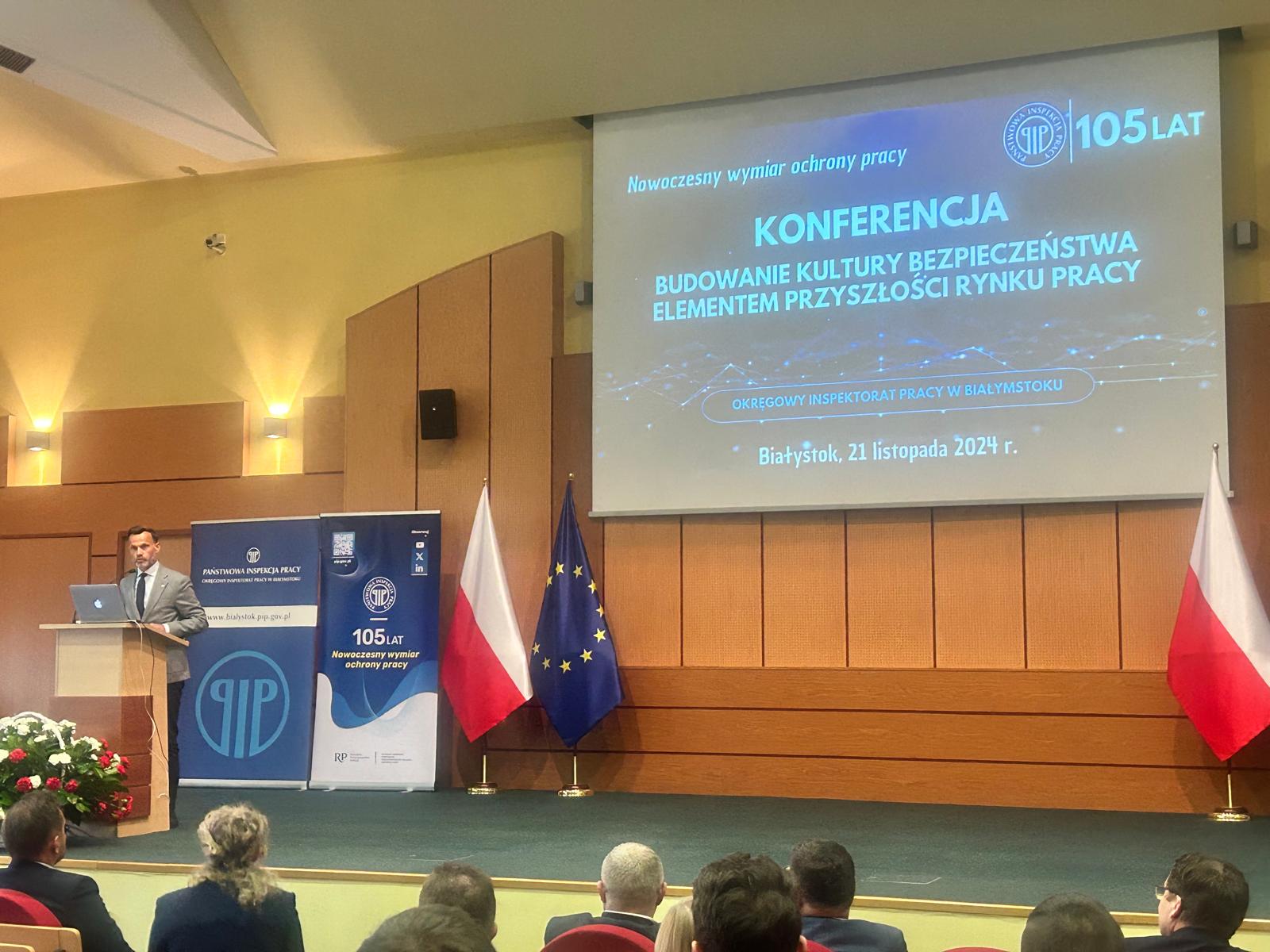 W dniu 21 listopada 2024 roku w Białymstoku odbyła się konferencja zorganizowana przez Okręgowy Inspektorat Pracy w Białymstoku, z okazji 105-lecia istnienia Państwowej Inspekcji Pracy. Wydarzenie to zgromadziło przedstawicieli władz, pracodawców, pracowników, młodzież, nauczycieli oraz działaczy społecznych, by wspólnie podjąć dyskusję na temat najważniejszych wyzwań związanych z bezpieczeństwem i godnymi warunkami pracy w Polsce.