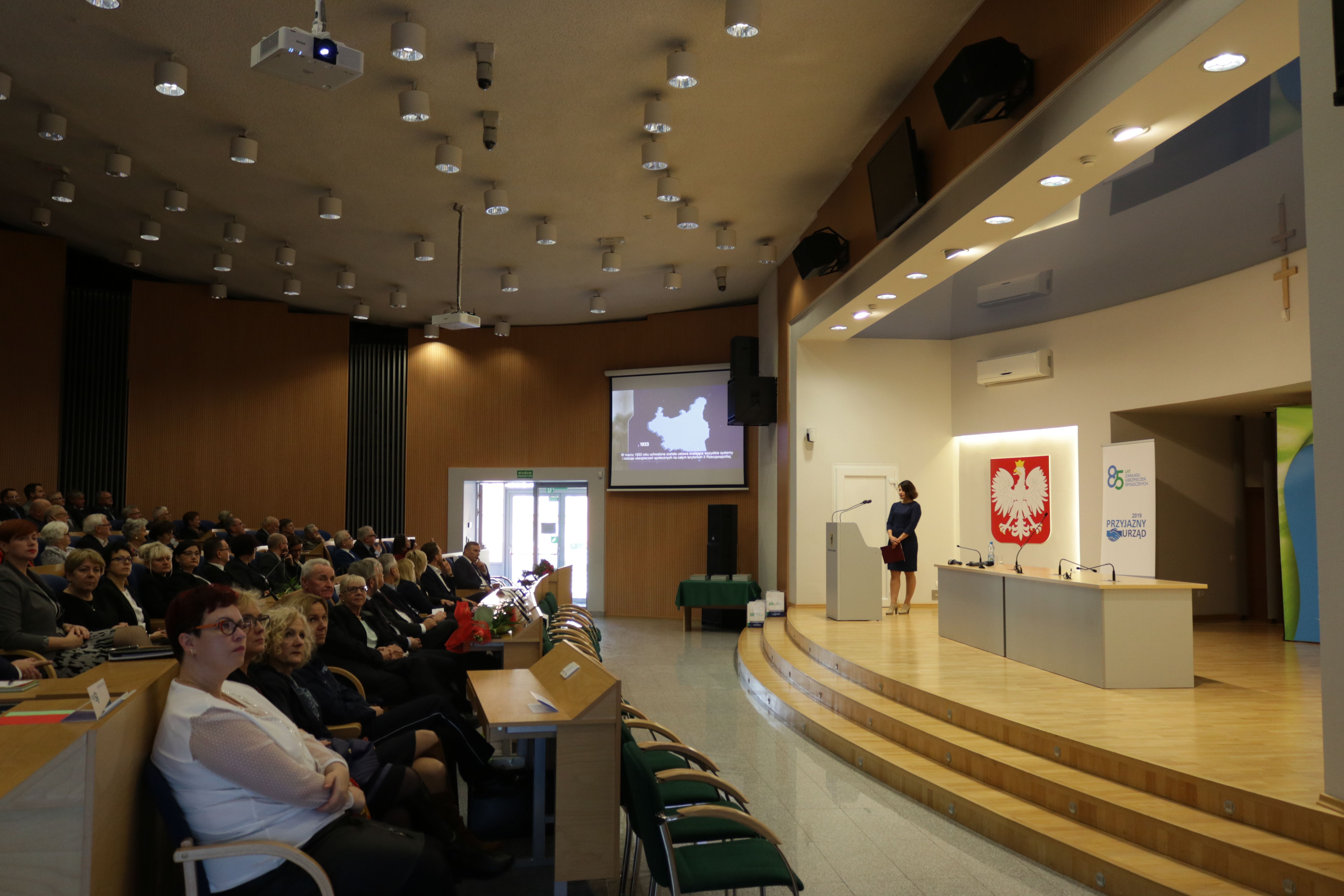 Jubileuszową Galę zainaugurowała Dyrektor Oddziału ZUS w Gdańsku Anna Pawłowska. Licznie przybyli goście obejrzeli przygotowany specjalnie na tę okazję film o historii ZUS.
