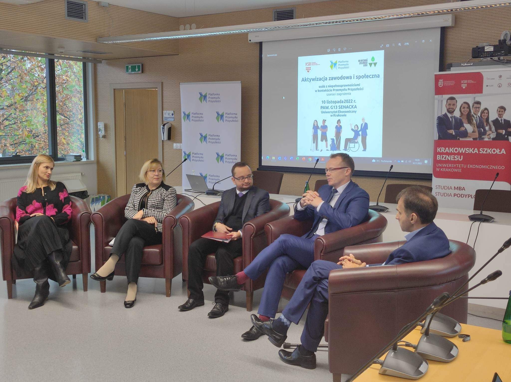 Obecni na konferencji przedstawiciele Uniwersytetu Ekonomicznego opowiedzieli o postępach w dostosowywaniu uczelni do potrzeb osób z różnymi niepełnosprawnościami. Jako realizatorzy projektu „UEK Odpowiedzialny” kładą nacisk nie tylko na wykształcenie studentów w konkretnych dziedzinach naukowych, ale również na wykreowanie studentów na obywateli wrażliwych na los drugiego człowieka. Podkreślono, że to w nich jest potencjał przyszłych przedsiębiorców i pracodawców, którzy mogą prowadzić biznes odpowiedzialny społecznie.
