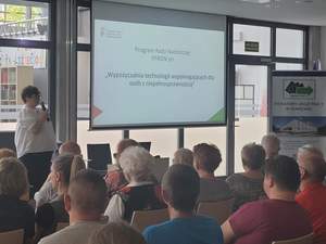 Pani Joanna Śliwa przedstawiła ofertę Centrum Informacyjno-Doradczego dla Osób z Niepełnosprawnością przy naszym Oddziale PFRON i opowiedziała szczegółowo o Wypożyczalni technologii wspomagających dla osób z niepełnosprawnością. Obie przedstawicielki naszego Oddziału odpowiadały na wiele pytań dotyczących programów PFRON.