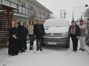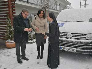 Dokumenty i kluczyki do pojazdu z rąk pani Iwony Rejnhardt - Dyrektora Powiatowego Centrum Pomocy Rodzinie w Opolu oraz pana Łukasz Żmudy – Dyrektora Oddziału Opolskiego Państwowego Funduszu Rehabilitacji Osób Niepełnosprawnych odebrała Siostra Urszula Kocoń – Siostra Dyrektor Domu Pomocy Społecznej Prowadzonego przez Zgromadzenie Sióstr Pielęgniarek Według Trzeciej Reguły św. Franciszka.