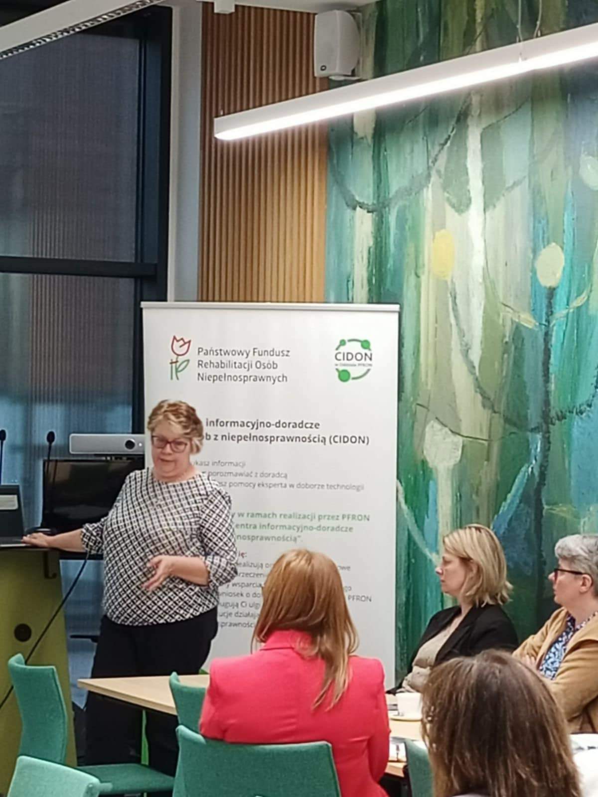 Celem spotkania było zapoznanie zebranych gości z działalnością CIDON-u, rodzajem oferowanego wsparcia, ofertą OWIT-ów, czy „Wypożyczalnią technologii wspomagających”, które omówiły pracownice CIDON-u
