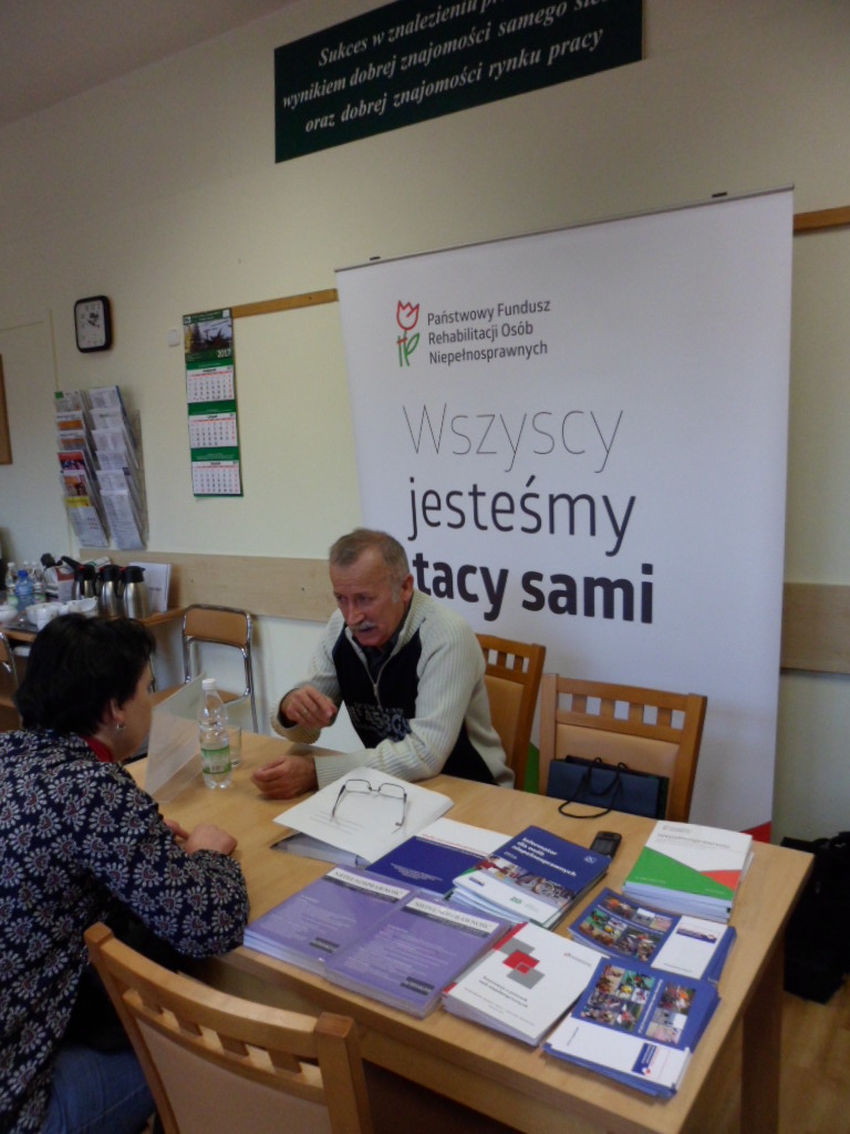 Państwowy Fundusz Rehabilitacji Osób Niepełnosprawnych Oddział Lubelski przygotował stoisko informacyjne na którym udzielane były informacje o możliwości uzyskania wsparcia w zakresie dofinansowania do wynagrodzeń pracowników niepełnosprawnych. Ponadto Adam Mazurek pracownik Oddziału zaprezentował różne możliwości wsparcia rynku pracy ze środków PFRON.