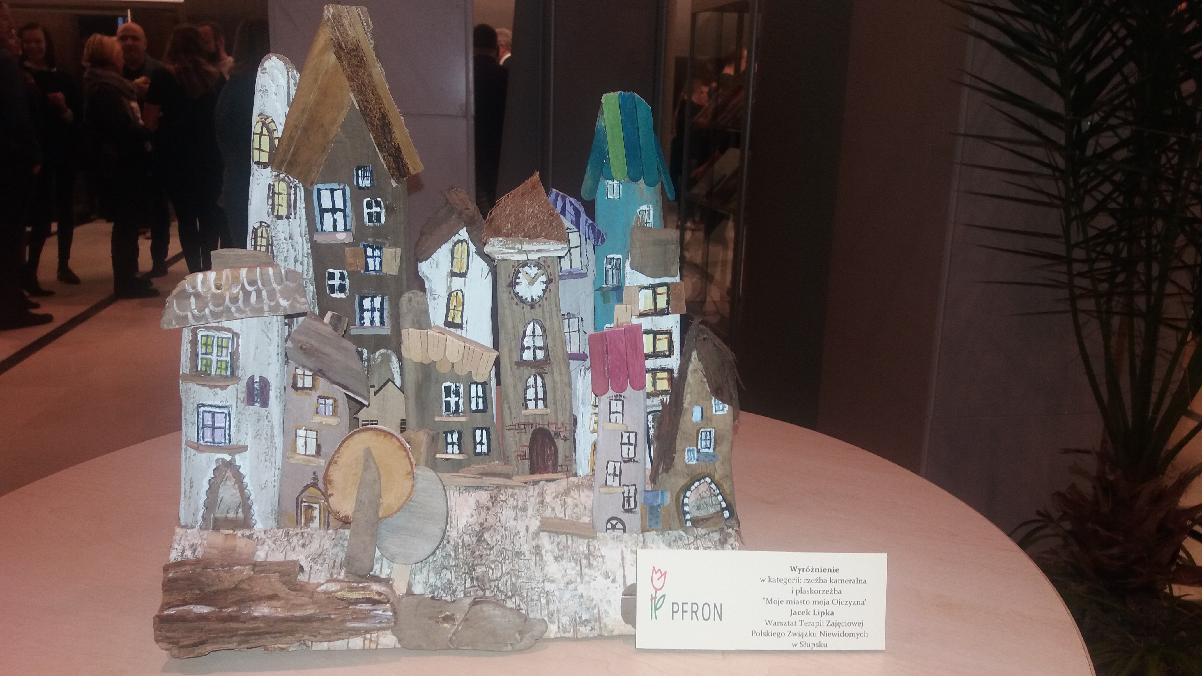 W trakcie uroczystości można było podziwiać nagrodzone prace laureatów. Zachwycały one techniką wykonania, wielką dbałością o szczegóły oraz kolorystyką. Kilka z nich załączamy w fotorelacji z wydarzenia. Wśród nich, wyróżniona w kategorii "Tkanina i aplikacja" praca „Tak widzę moją ojczyznę”, autorstwa Agnieszki Majchrzak z Warsztatu Terapii Zajęciowej w Piaseczniku, wykonana pod opieką instruktor/terapeuty Agnieszki Sierakowskiej. Wisienką na torcie uroczystości był koncert dla laureatów konkursu – ZIMOWE PIOSENKI z udziałem orkiestry Zbigniewa Górnego, który poruszył wszystkich gości i zachęcił ich do dobrej zabawy. Na podsumowanie warto zauważyć, że istnieją różne formy integracji, ale sztuka należy niewątpliwie do tych najprzyjemniejszych.