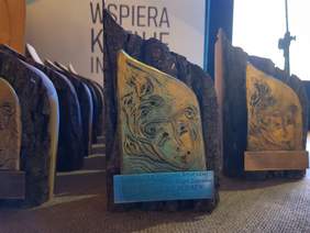 Pamiątkowe statuetki festiwalowe, które otrzymali wszyscy występujący na scenie zostały wykonane z ułamanej podczas wichury gałęzi stuletniej lipy rosnącej w sąsiedztwie Warsztatu Terapii Zajęciowej w Zgłobniu. Jak żartobliwie powiedziała Pani Anna Dębska – Kierownik WTZ, terapeuci pracujący w warsztatach potrafią wykorzystać w swojej pracy każdy materiał.