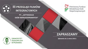 Państwowy Fundusz Rehabilitacji Osób Niepełnosprawnych wraz z Uniwersytetem Ekonomicznym w Poznaniu zapraszają do wzięcia udziału w III edycji Przeglądu Filmów Integracyjnych. Przypominamy, że filmy promujące ideę integracji osób niepełnosprawnych można zgłaszać do Konkursu jeszcze tylko do 11 marca 2019 roku. Zgłoszenia przyjmujemy z całej Polski.