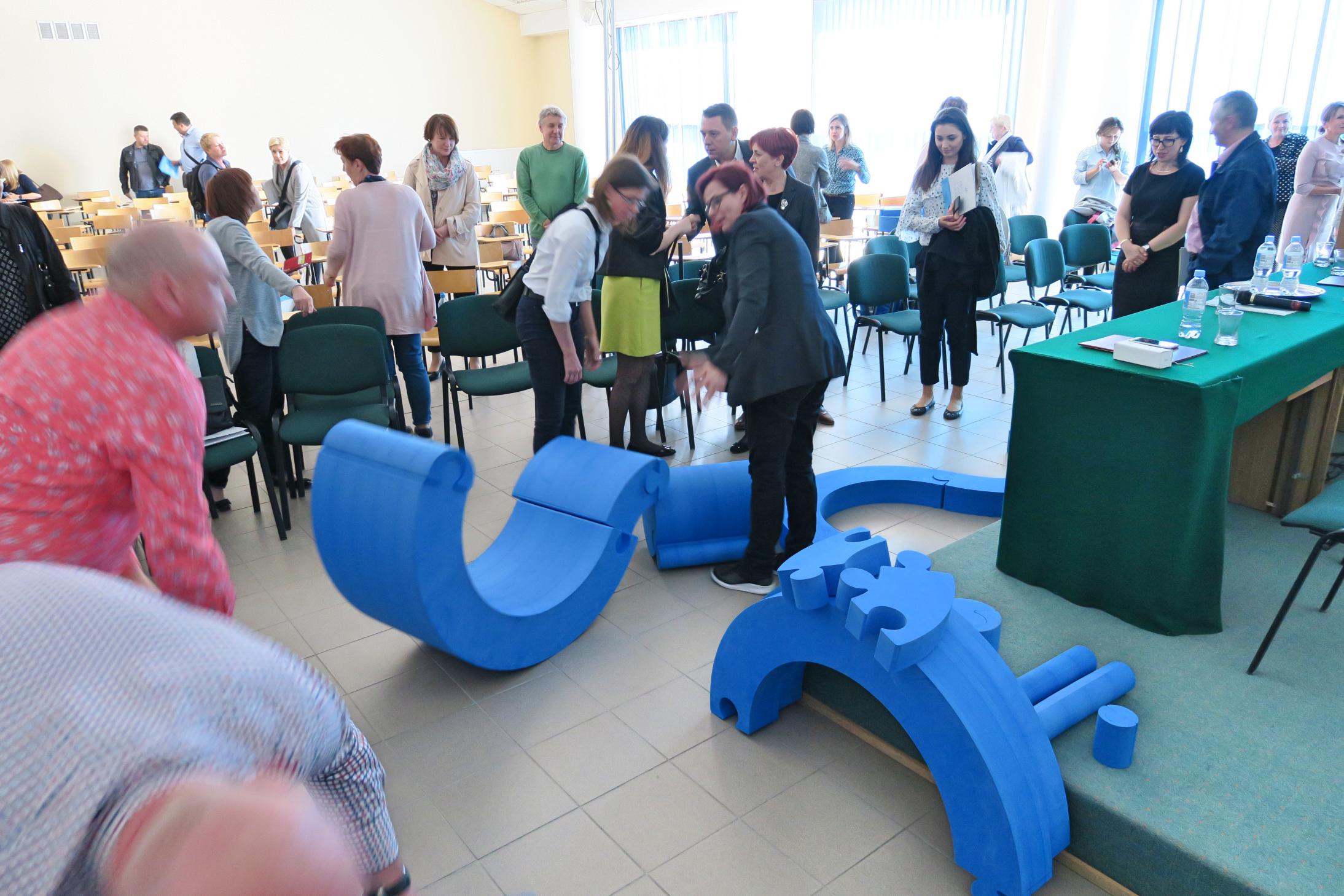Po zakończeniu konferencji uczestnicy mogli doświadczyć wrażeń, jakie przynosi korzystanie z klocków do rehabilitacji przedszkolaków z zaburzeniami motoryki dużej.