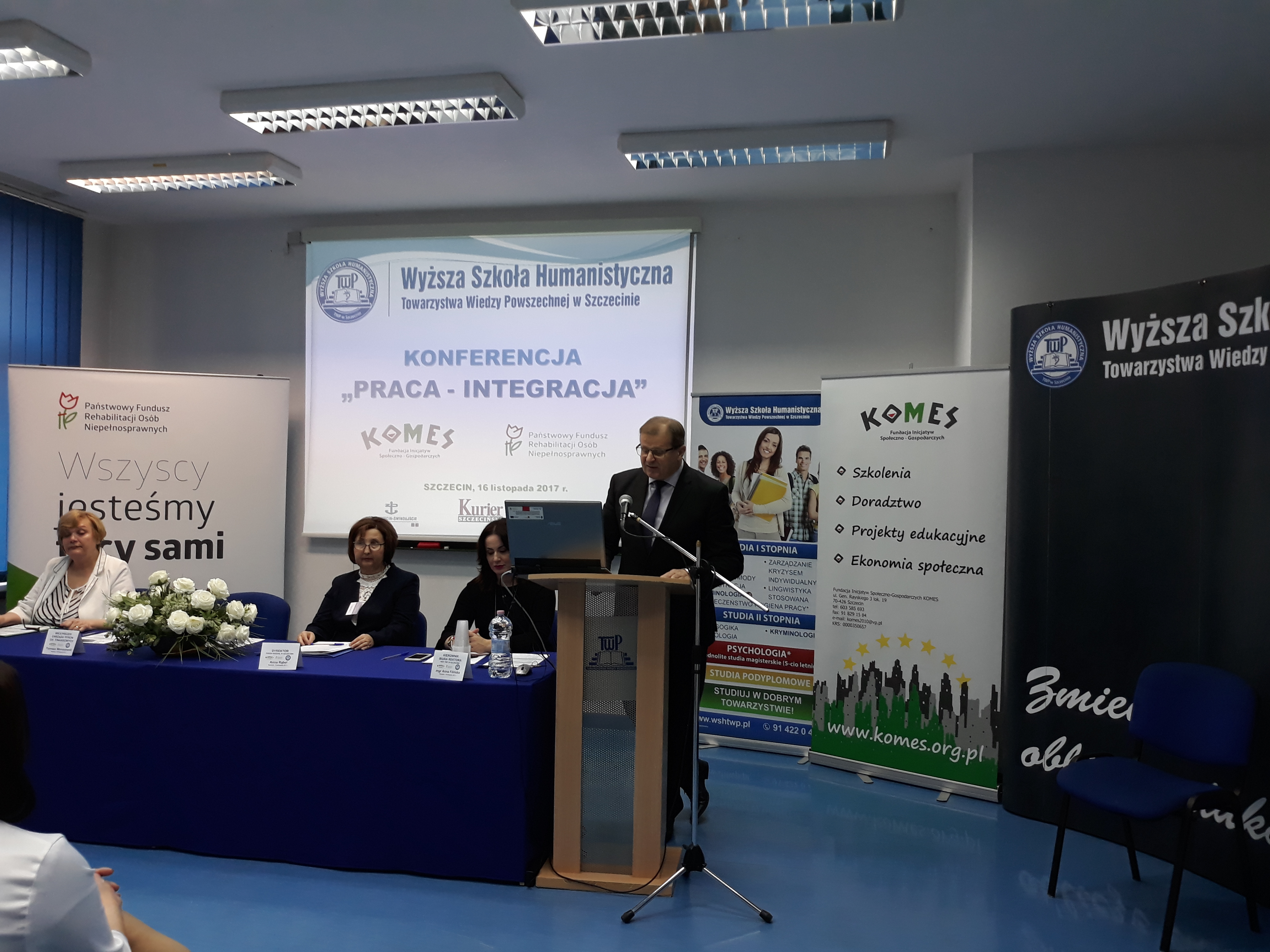 Konferencja PRACA-INTEGRACJA zorganizowana przez Oddział Zachodniopomorski Państwowego Funduszu Rehabilitacji Osób Niepełnosprawnych, Fundację Inicjatyw Społeczno-Gospodarczych KOMES oraz Wyższą Szkołę Humanistyczną TWP w Szczecinie była jednym z najważniejszych i najbardziej dopracowanych pod względem merytorycznym wydarzeń poruszających problematykę niepełnosprawności w bieżącym roku. Obrady potrwały równo dziewięć godzin. Obecnie występujące bariery i problemy, a także propozycje ich rozwiązania zaprezentowało 23 prelegentów.