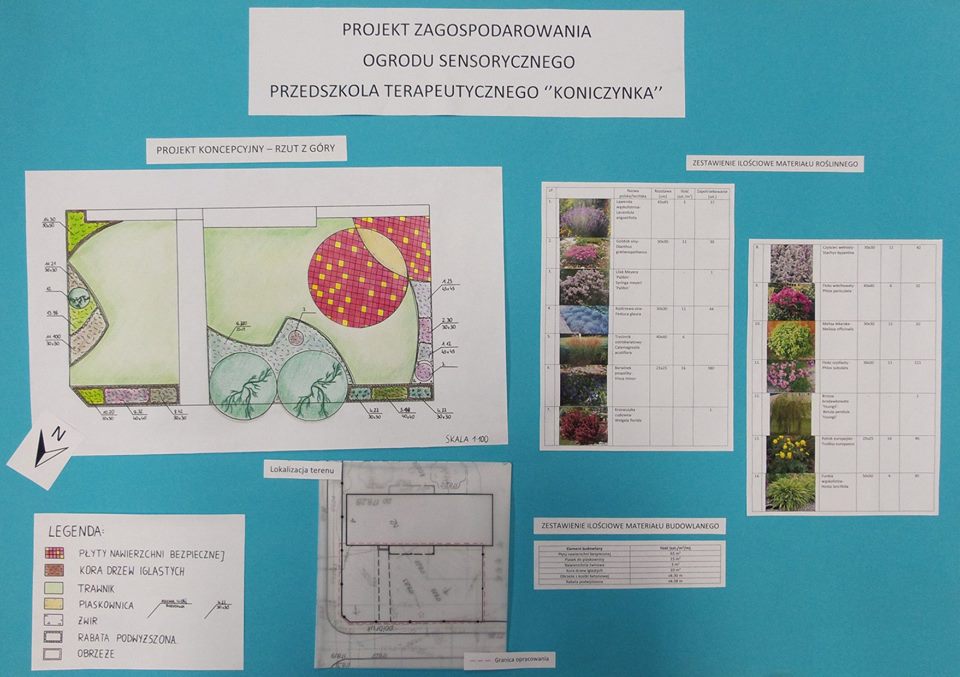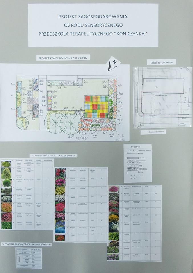 Naprzeciw planom Stowarzyszenia wyszli uczniowie i nauczyciele Zespołu Szkół Centrum Kształcenia Rolniczego w Suwałkach. Uczniowie – przyszli technicy architektury krajobrazu, przygotowali 6 projektów ogrodu sensorycznego dla przedszkola „Koniczynka”, natomiast szkoła zorganizowała konkurs na najlepszy projekt. Szkoła deklaruje również pomoc jesienią przy realizacji ogrodu.