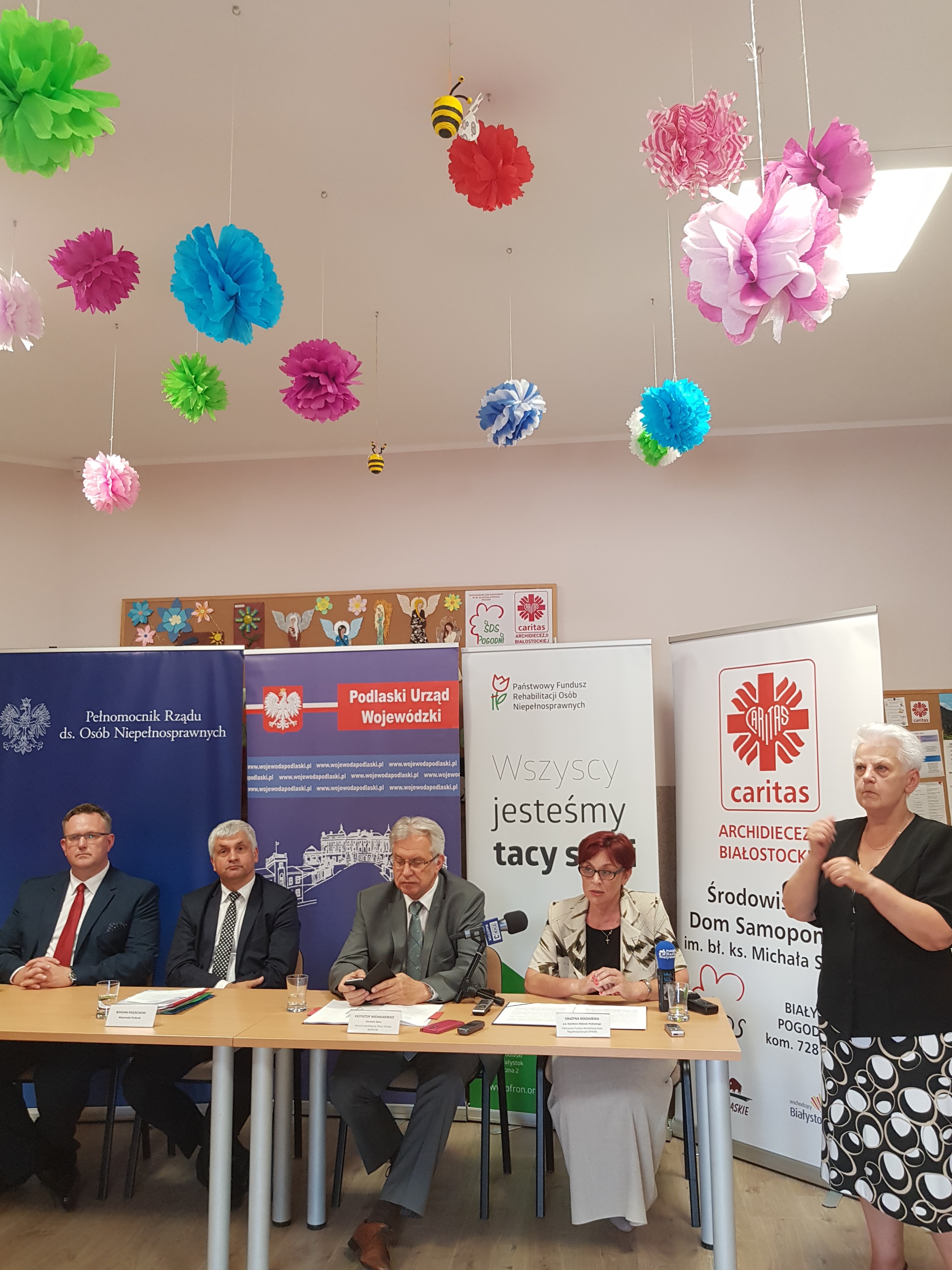 Spotkanie zostało poprzedzone briefingiem prasowym, w którym udział wzięli: Pełnomocnik ds. Osób Niepełnosprawnych Krzysztof Michałkiewicz, Wojewoda Podlaski Bohdan Paszkowski, Dyrektor Oddziału Podlaskiego NFZ Maciej Olesiński oraz p.o. Dyrektora Oddziału Podlaskiego PFRON Grażyna Bogdańska.
